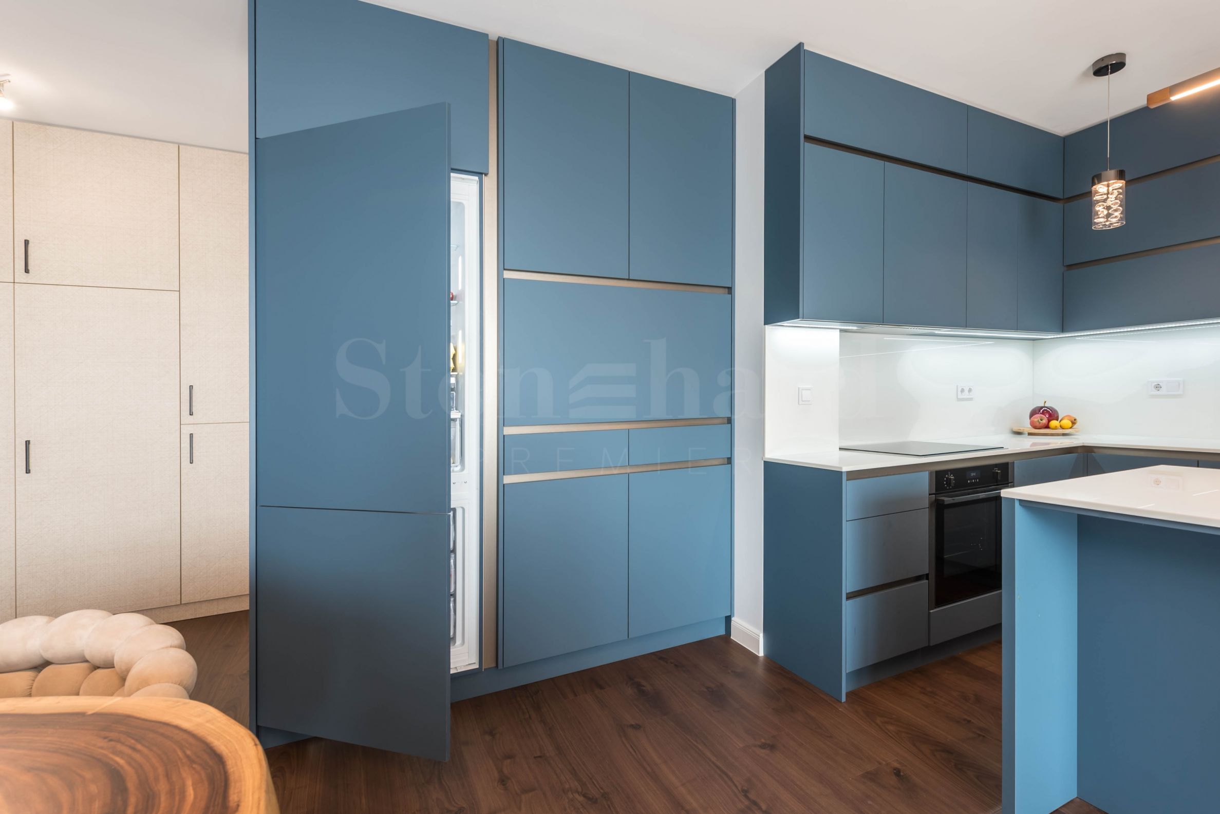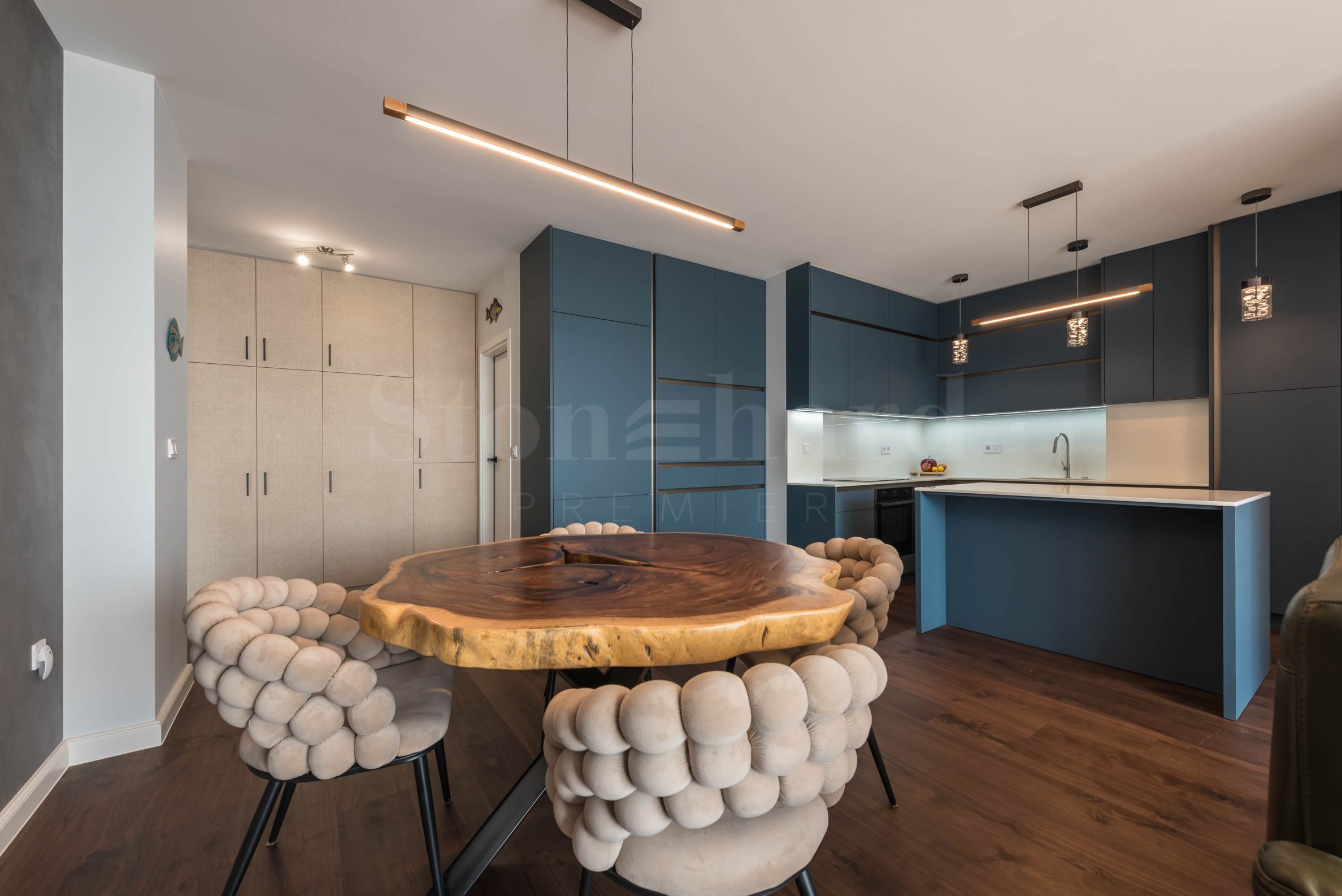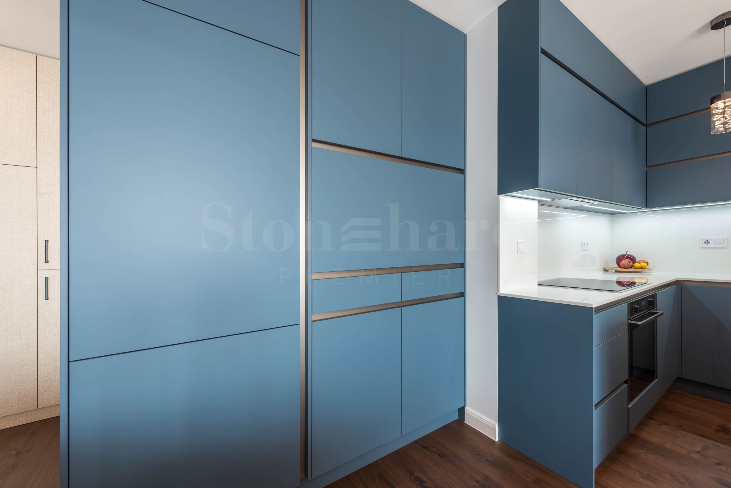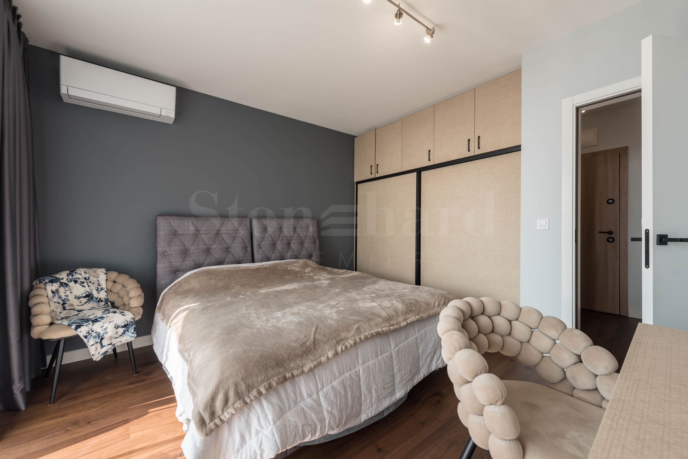 dva balkony.Byt je plně zařízen a vybaven vysoce kvalitním nábytkem a elektrospotřebiči, kombinující styl, komfort a funkčnost. Disponuje také sklepem o ploše 4,40 m².