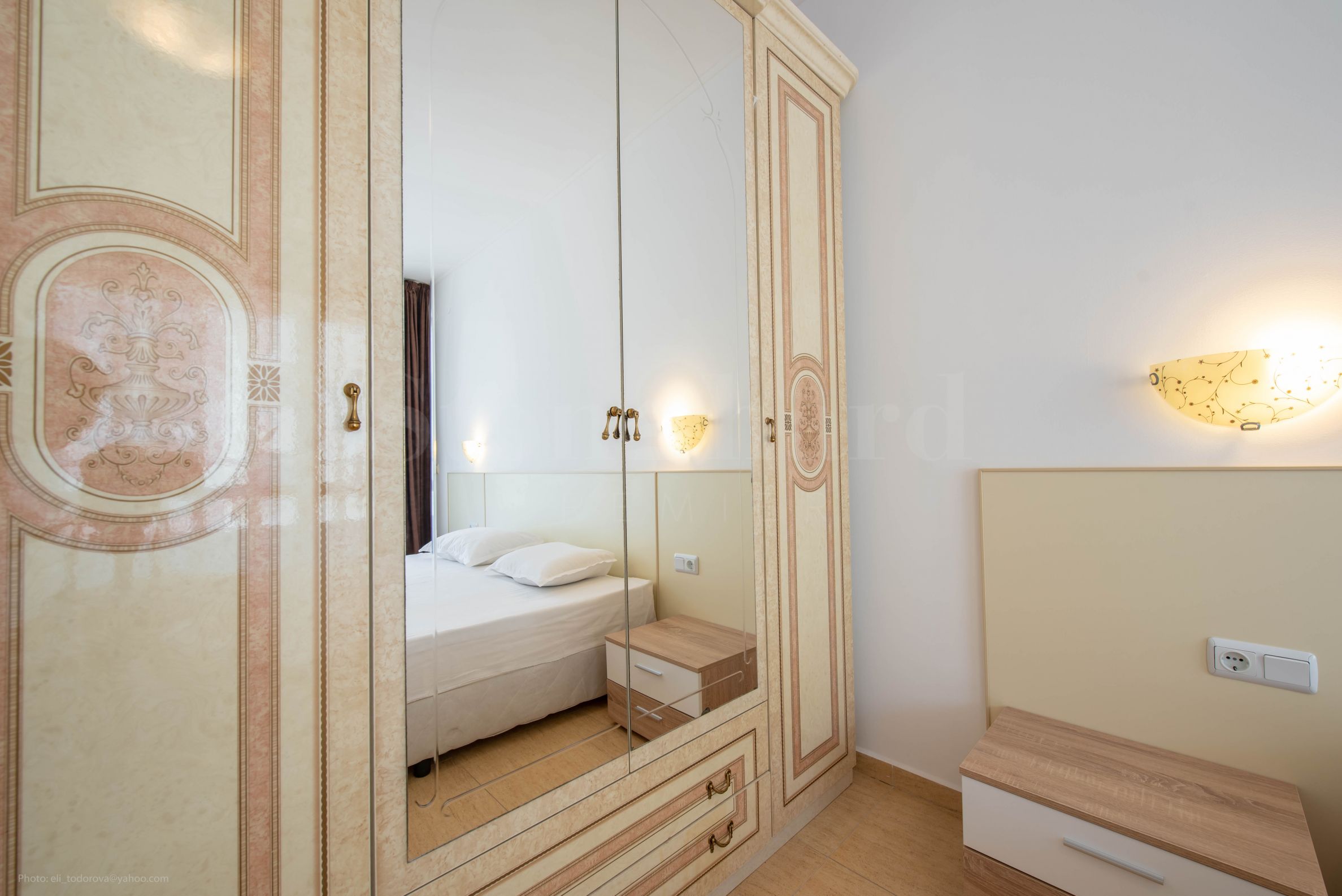 velká ložnice s unikátním panoramatickým výhledem na moře a vlastní koupelnou s toaletou, sprchou a vanou.Byt je plně zařízený a vybavený vším potřebným pro bydlení, včetně nábytku a elektrospotřebičů. Topení a chlazení je řešeno klimatizací.