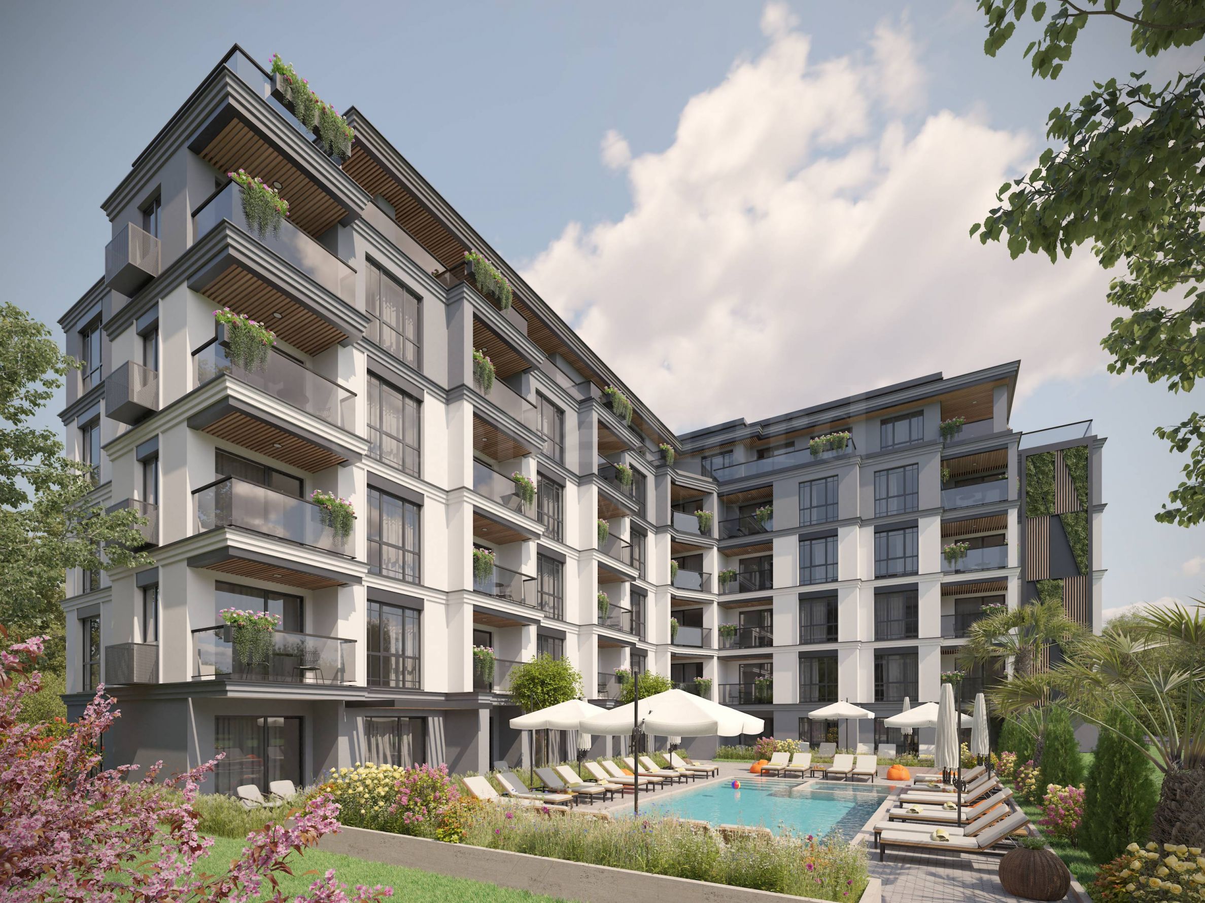 Apartmány v elegantním komplexu s bazénem v Slunečném pobřeží