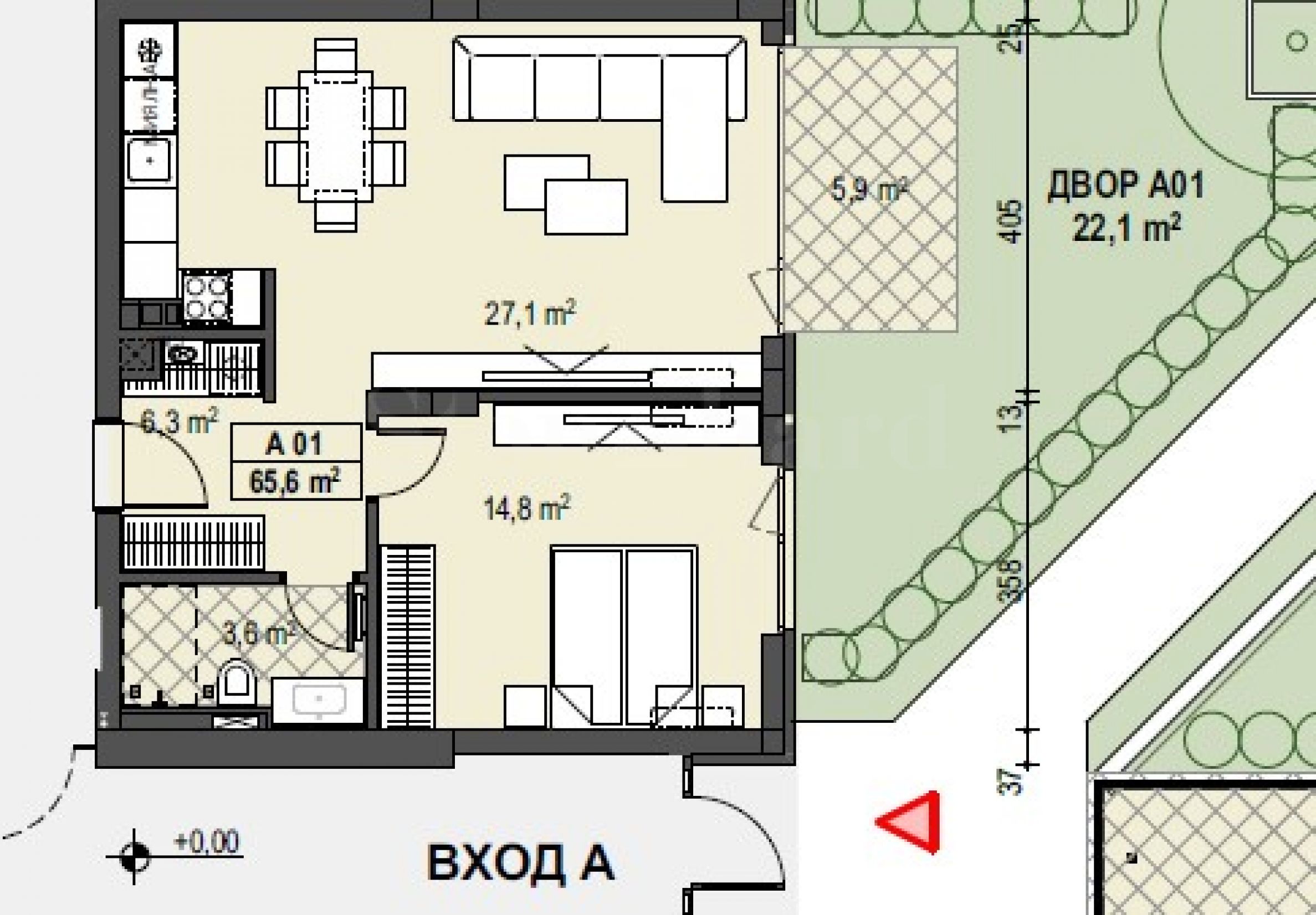 Obytné oblasti: 72.84 m²