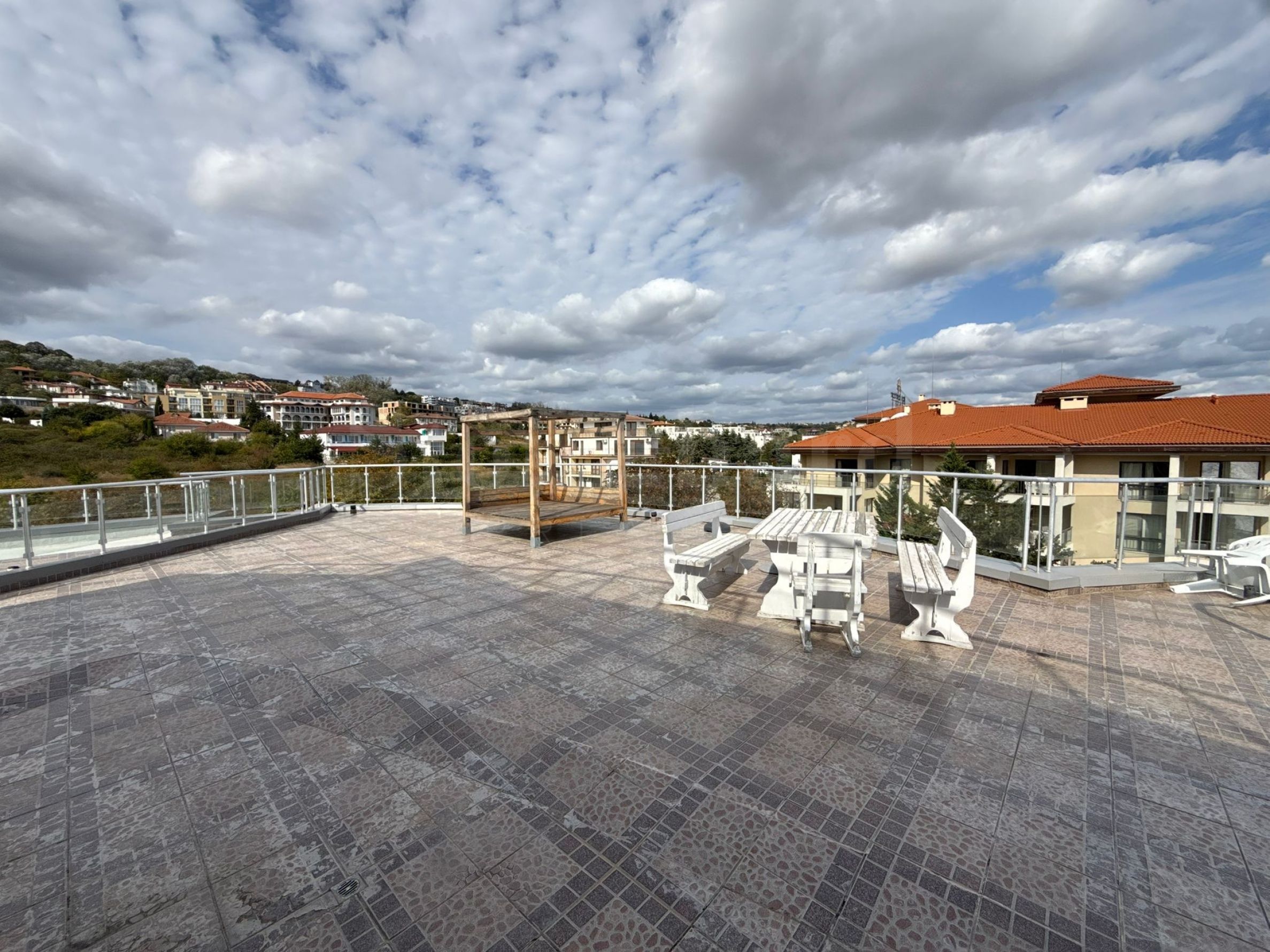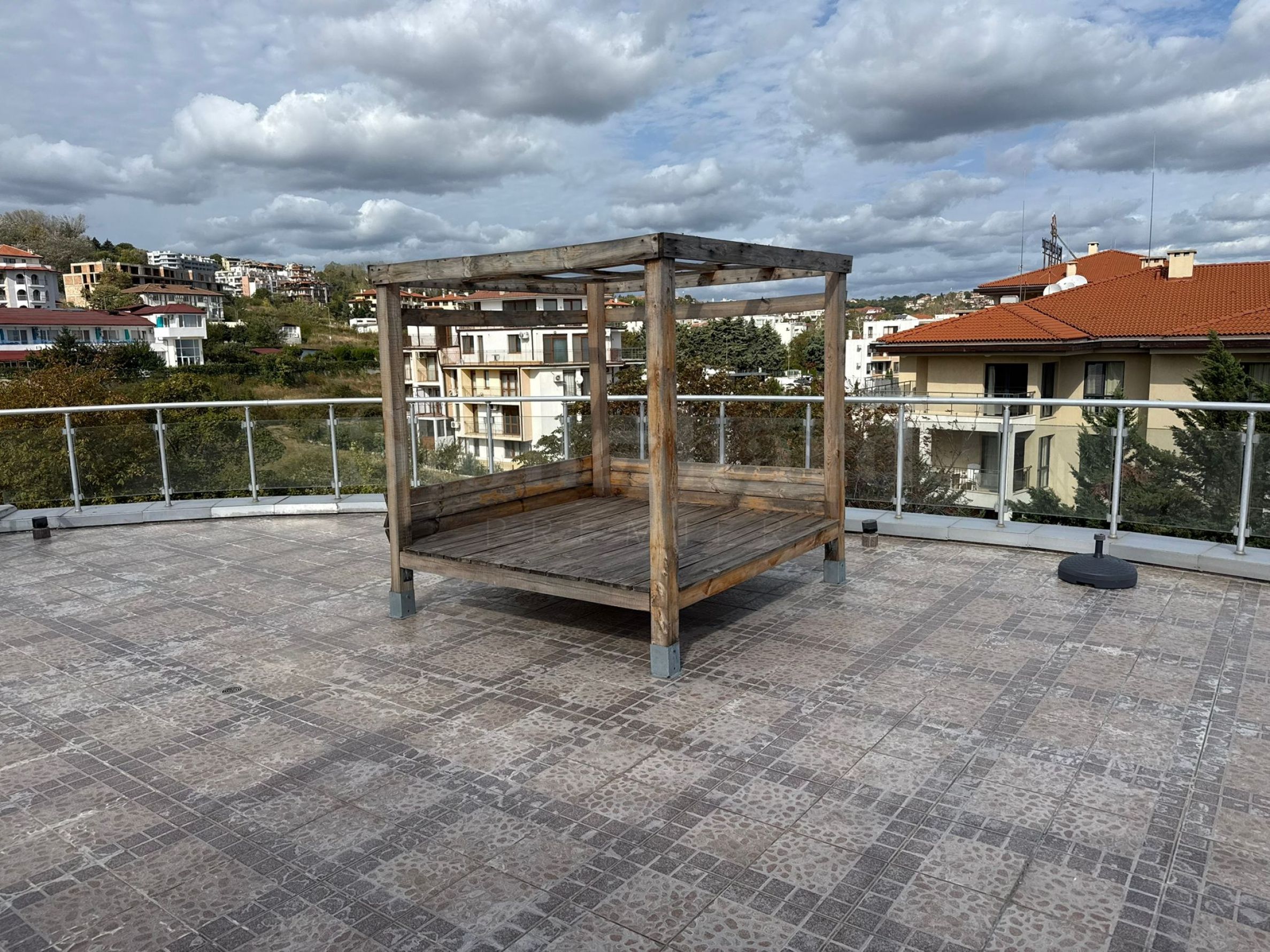 • obrovská panoramatická terasa s přímým výhledem na moře, altánkem s grilem, houpačkou a místem k odpočinku;