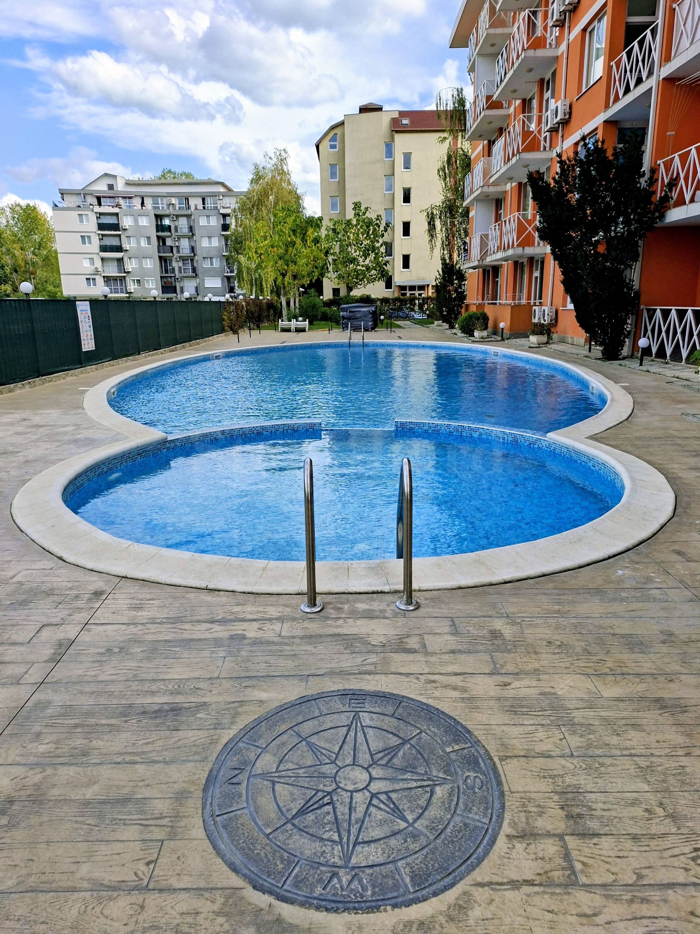 Zařízené studio s výhledem na bazén, blízko pláže v Slunečném pobřeží