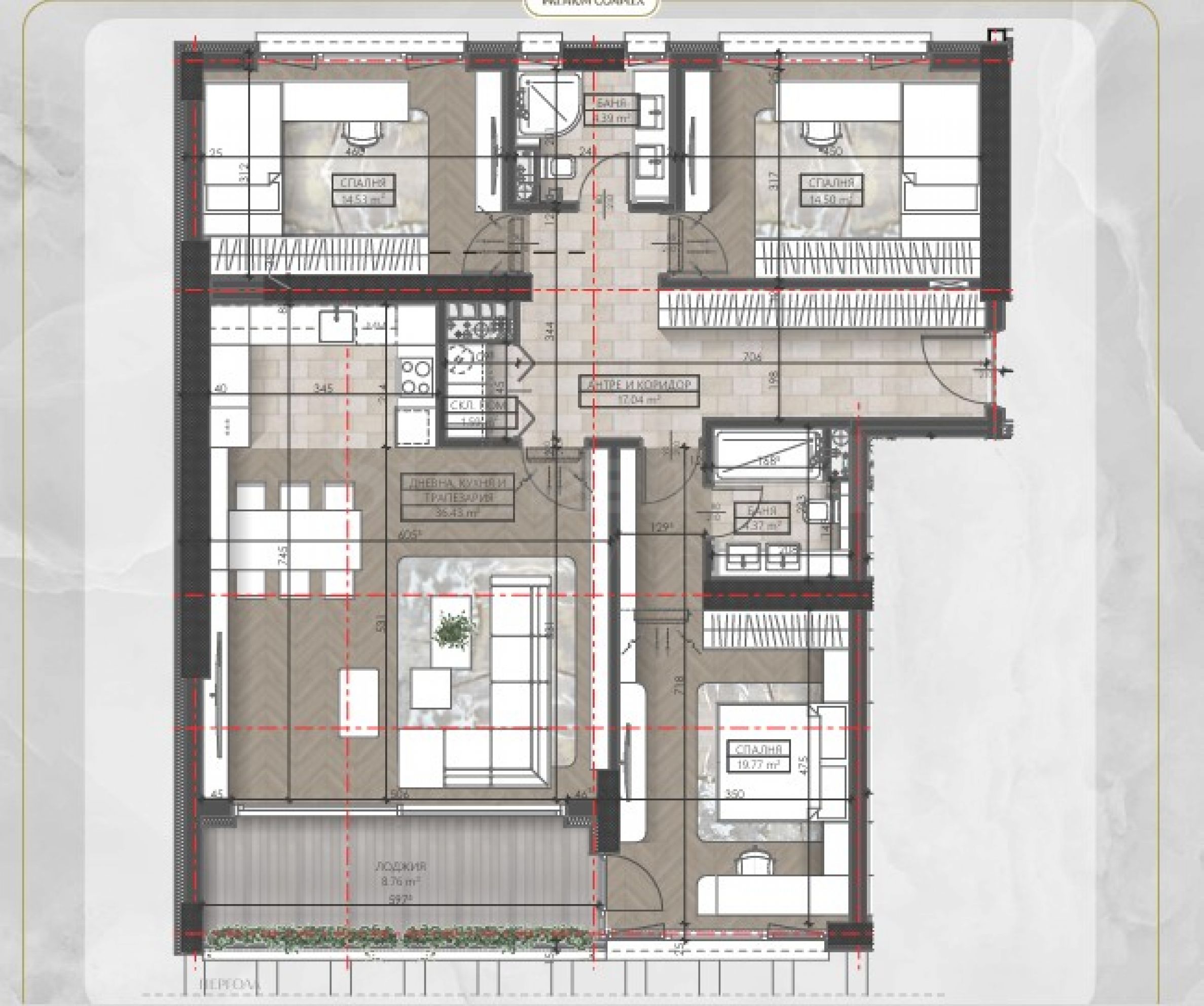 Čtyřpokojový byt s třemi terasami v elitním komplexu s Aкт 16 v městské části "Bojana"