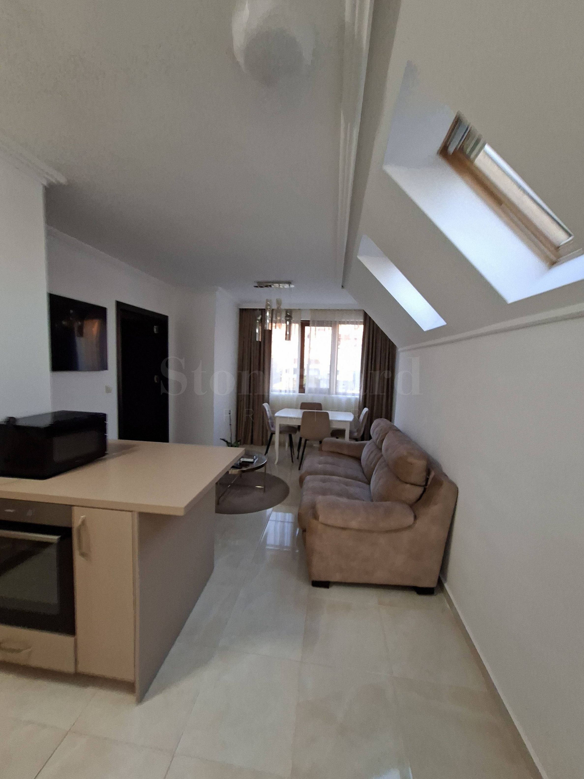 Byt je plně zařízený a vybavený kvalitním nábytkem a špičkovou technikou. Obě ložnice mají podlahové vytápění a klimatizaci. Na jedné terase je namontovaná automatická roleta.