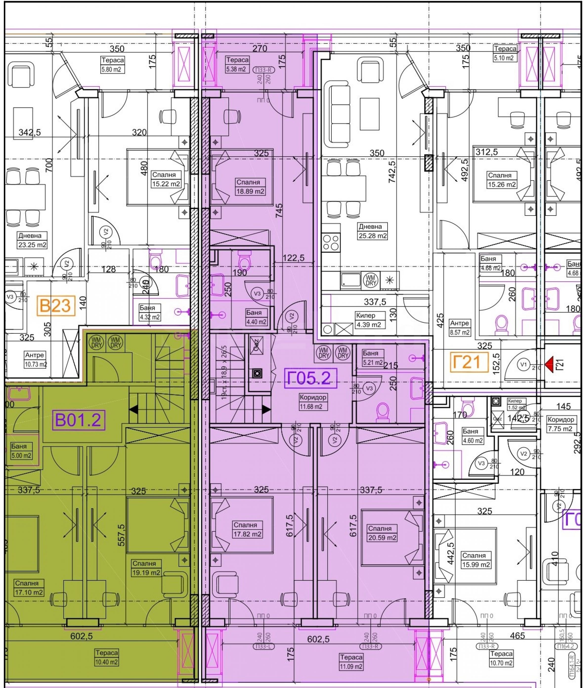 Mezonet se nachází v prvním a druhém patře a má jižní orientaci (bez jedné severní ložnice). K dispozici je prostorná přilehlá zahrada o rozloze 50,59 m² a dvě garáže v přízemí s přímým vjezdem do bytu. Před garážemi lze parkovat další dvě auta. Cena garáží - 55 000 eur (107 569 leva) bez DPH za kus.