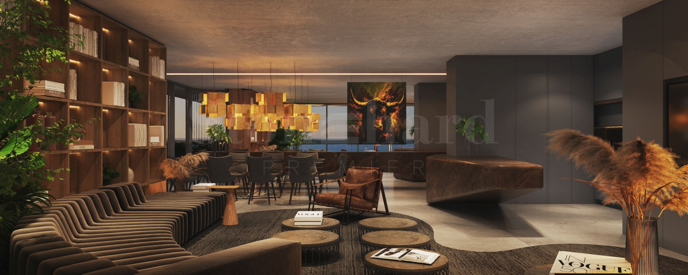 Samo foyer vítá s umírněným vzhledem a nenápadnými liniemi, čímž designéři zdůrazňují ostrovní život a jeho přirozenou krásu. Zde najdete příjemné zóny pro odpočinek nebo setkání s přáteli a sousedy, stejně jako recepci budovy, kde vám ochotný personál může pomoci s rezervacemi, vzniklými dotazy nebo každodenními úkoly, na které nemáte čas.