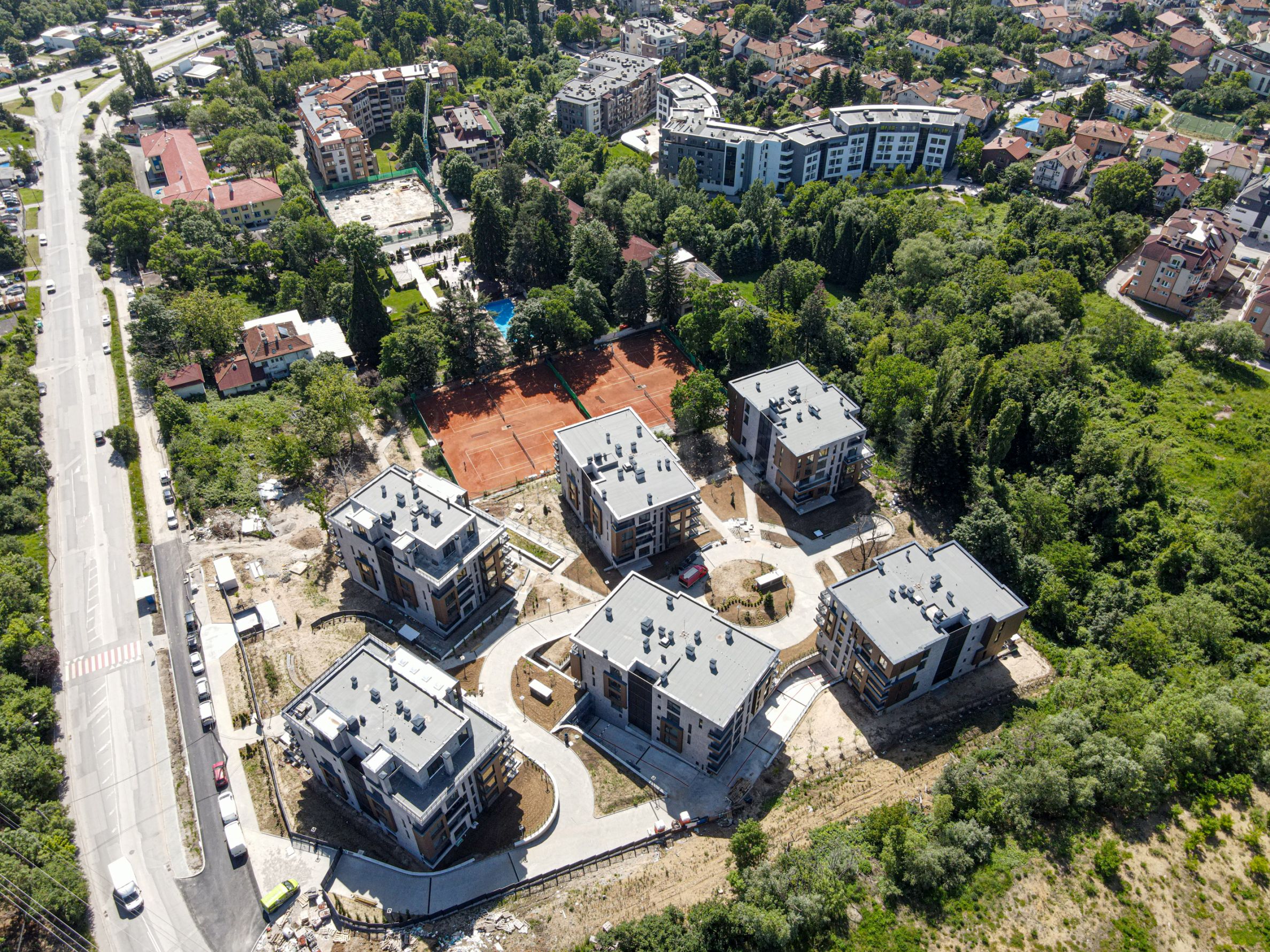 Mezi největší výhody tohoto komplexu ve srovnání s jinými novostavbami patří již existující celkové, víceleté zazelenění diplomatického klubu. V komplexu se nachází největší sekvoj v Sofii a stoletý ořech, které spolu s dalšími vysokými stromy poskytují hustý stín na dvoře a zvukovou izolaci.