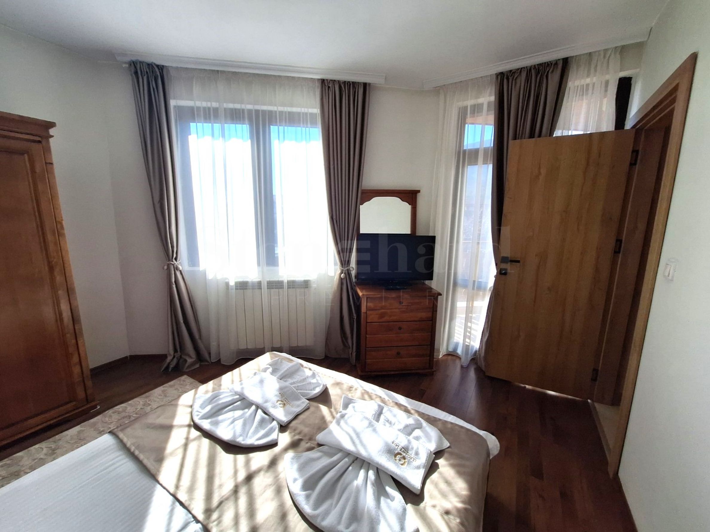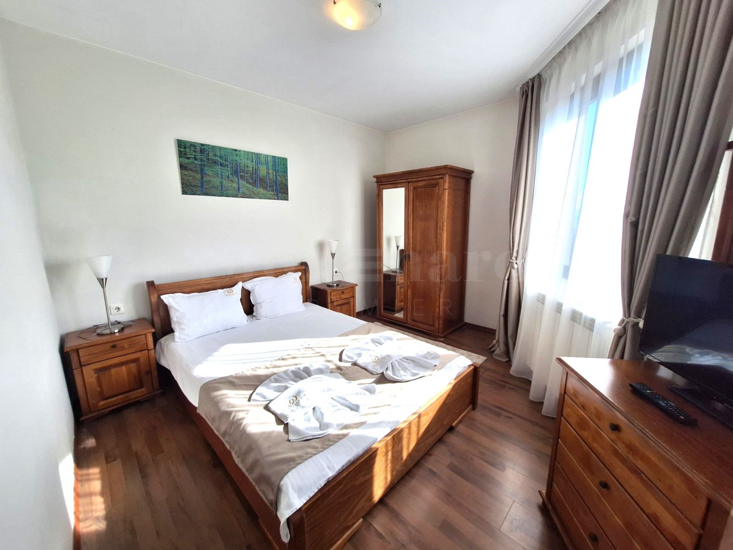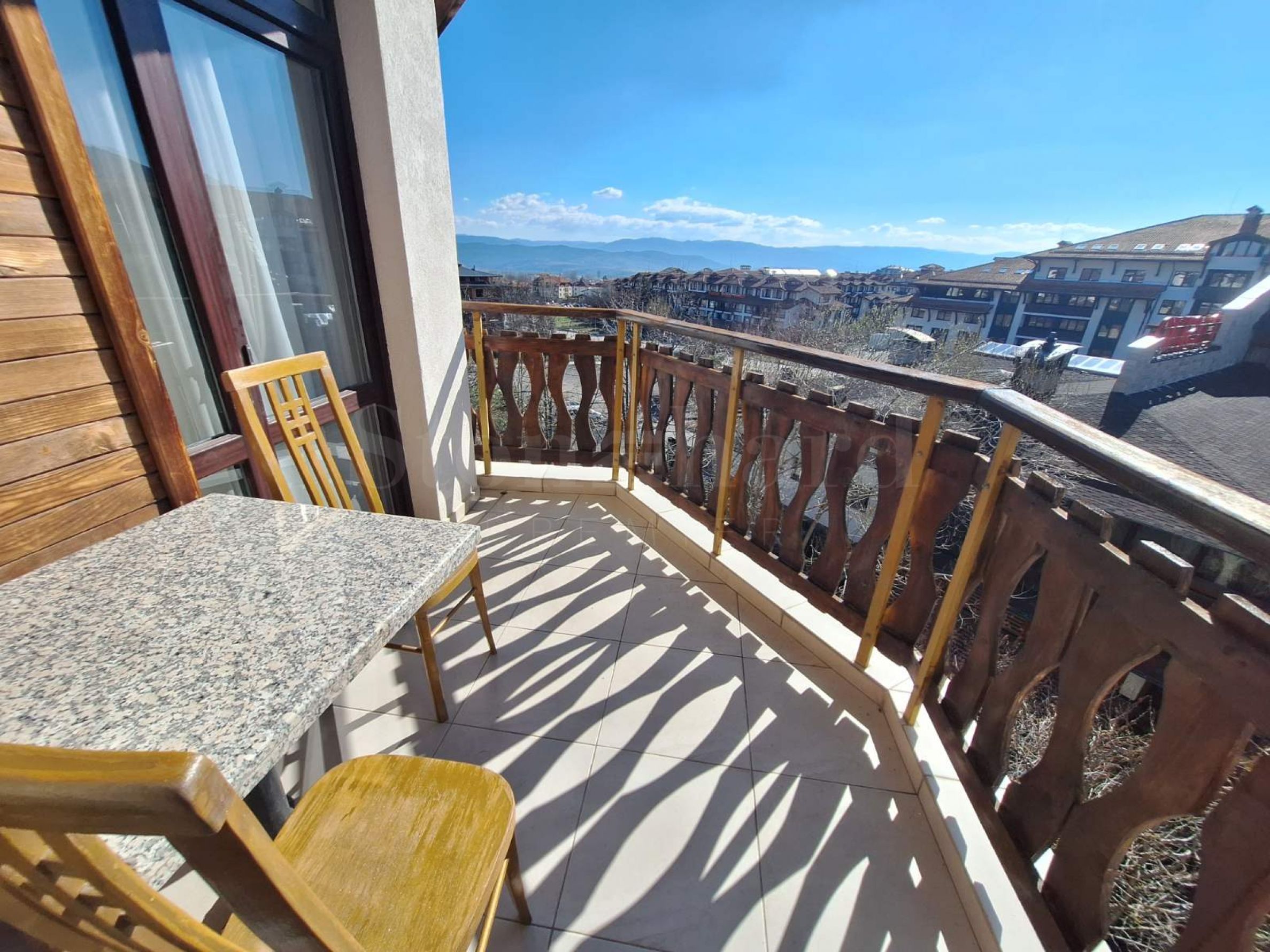 Světý dvoupokojový apartmán s výhledem na Pirin, umístěný v celoročním komplexu
