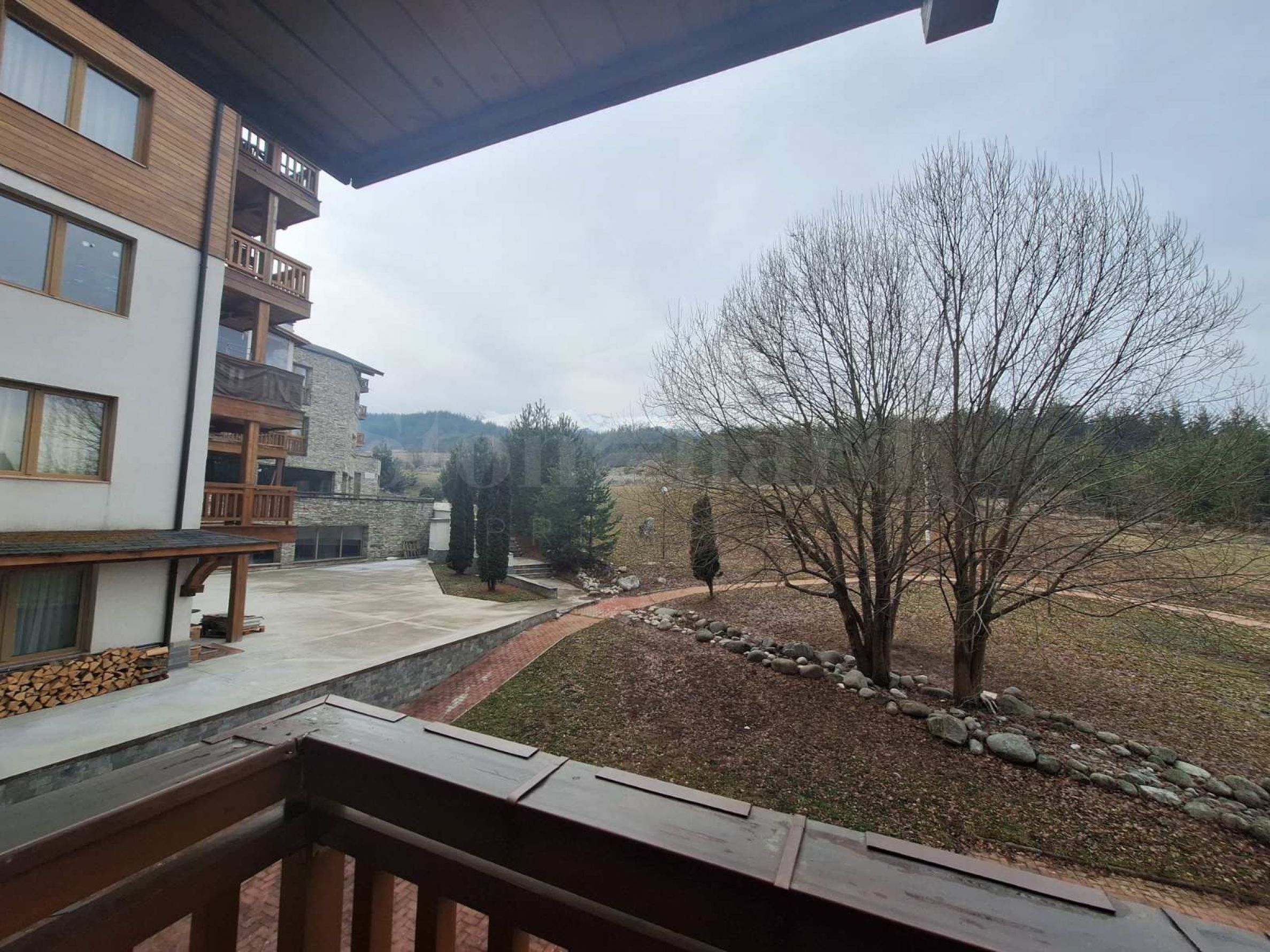 Byt nabízí krásný výhled na část sousedních budov, les a pohoří Pirin.