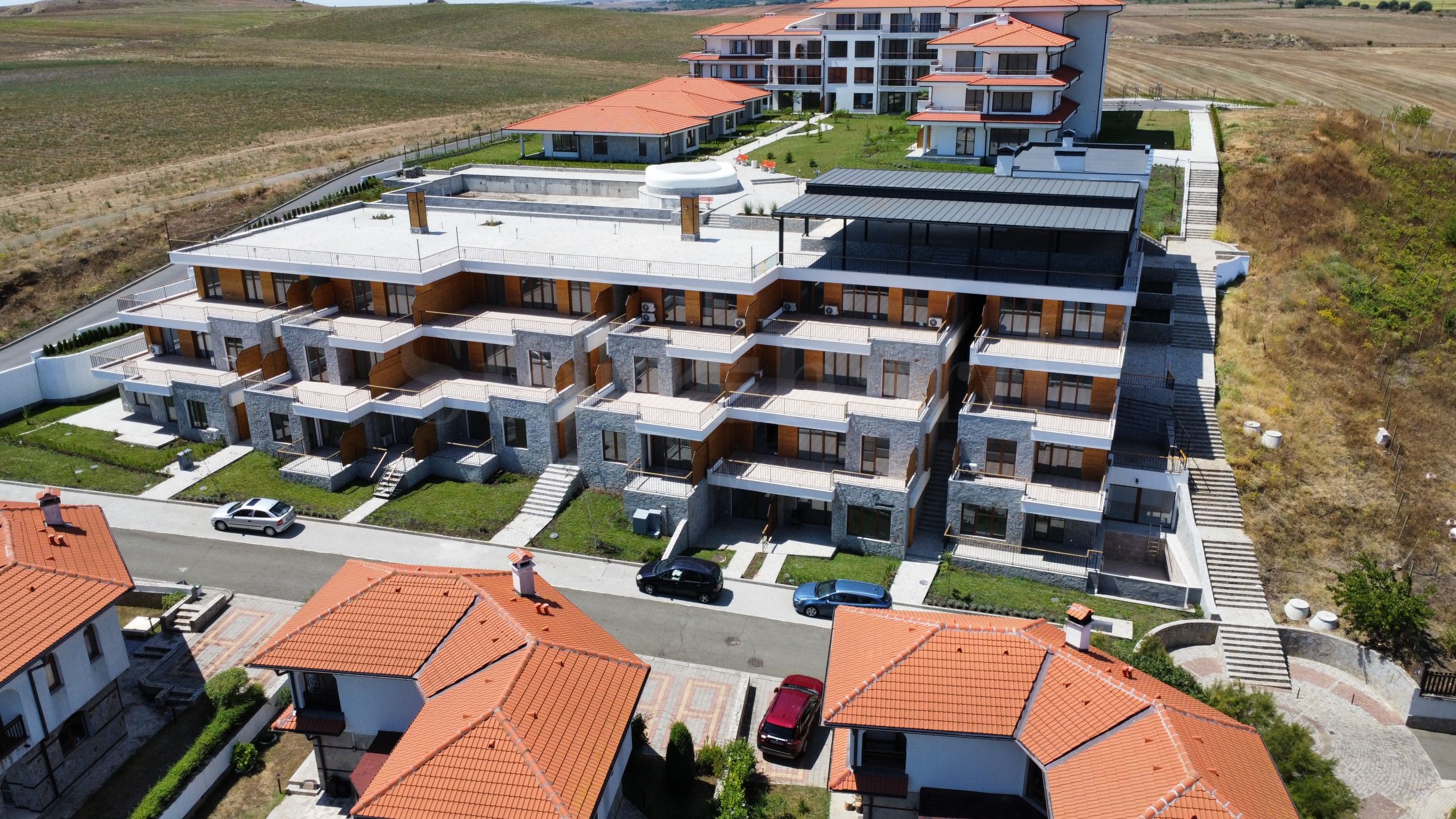 Apartmány k prodeji jsou jednopokojové, dvoupokojové a třípokojové byty, kvalitně dokončené "na klíč", bez nábytku. Podlažní plány odpovídají nejnovějším trendům v moderní budově. Všechny apartmány a vily jsou prostorné a světlé, s jihovýchodní orientací a dostatkem slunečního světla, s balkony s výhledem na moře. Hlavní architektonickou myšlenkou při navrhování komplexu bylo odhalit ohromující panoramatický výhled na moře a okolí. Obývací pokoje a ložnice mají francouzská okna.