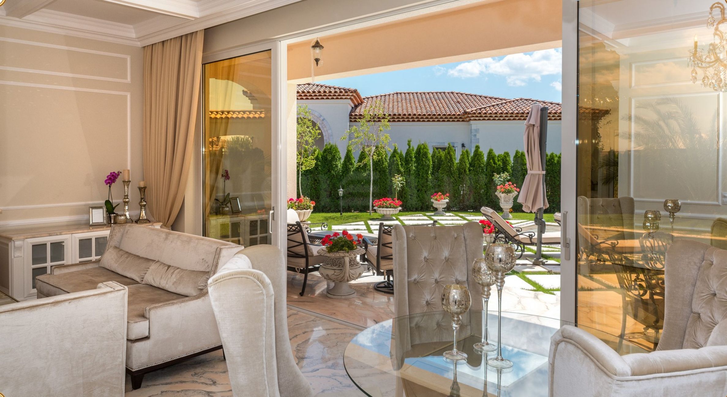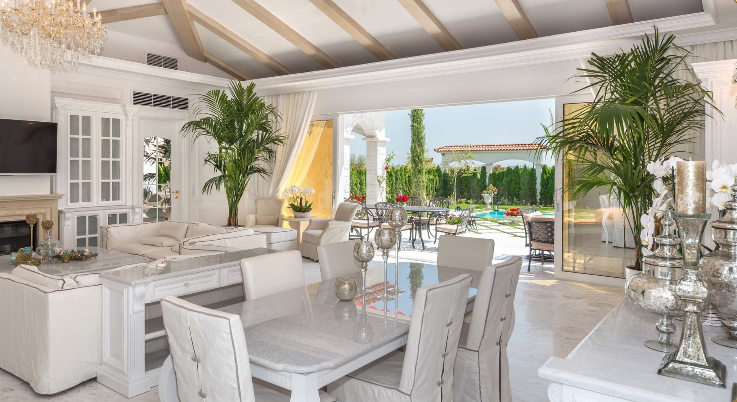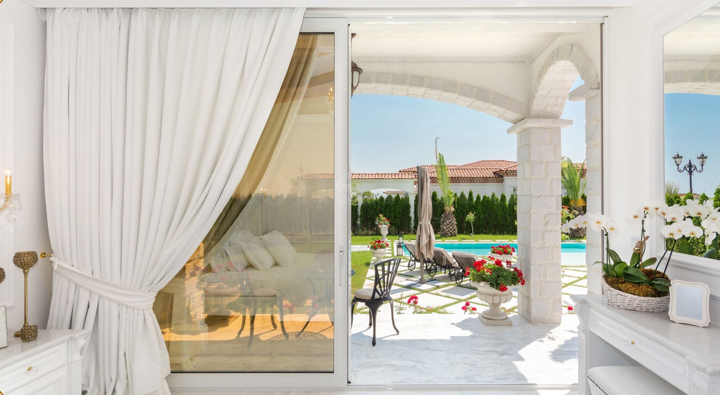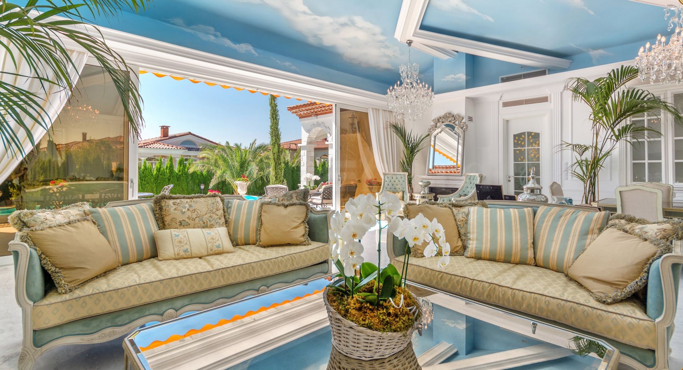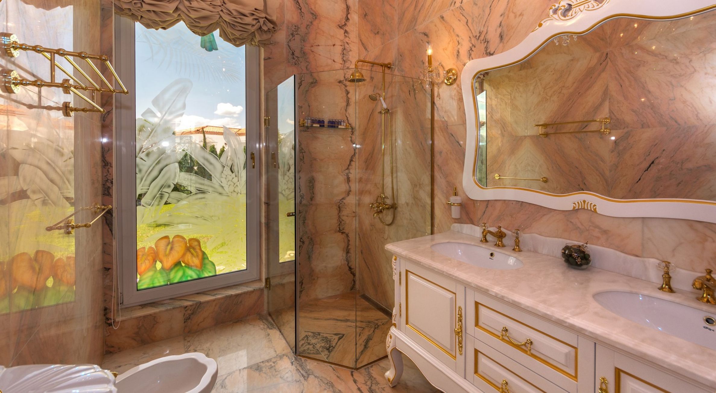 Dům je luxusně zařízený, zdobený originálními vitrážovými okny s kompletně individuálně vyrobeným nábytkem. Interiér využívá mimořádně kvalitní přírodní materiály, přírodní mramor „Pyrgos Light“. Nemovitost s reprezentativním vchodem nabízí tři dvoulůžkové ložnice s vlastní koupelnou a šatnou, obývací pokoj „otevřený prostor“ s kuchyní a jídelnou, verandu a krb. Bazén se nachází v centru města a je obložen výhradně přírodním mramorem „Pyrgos Light“. Zahrada je prostorná a bohatě upravená exotickými stromy a květinami.