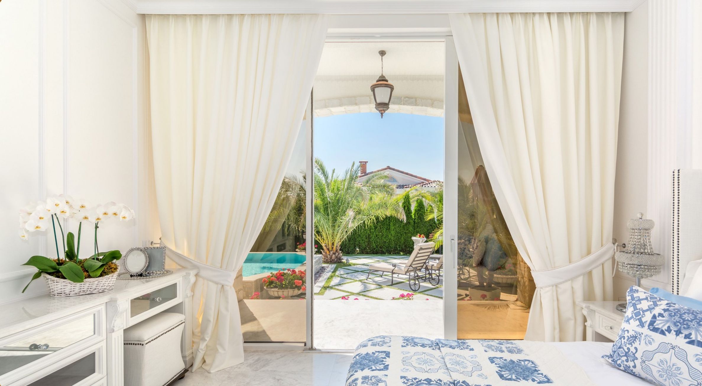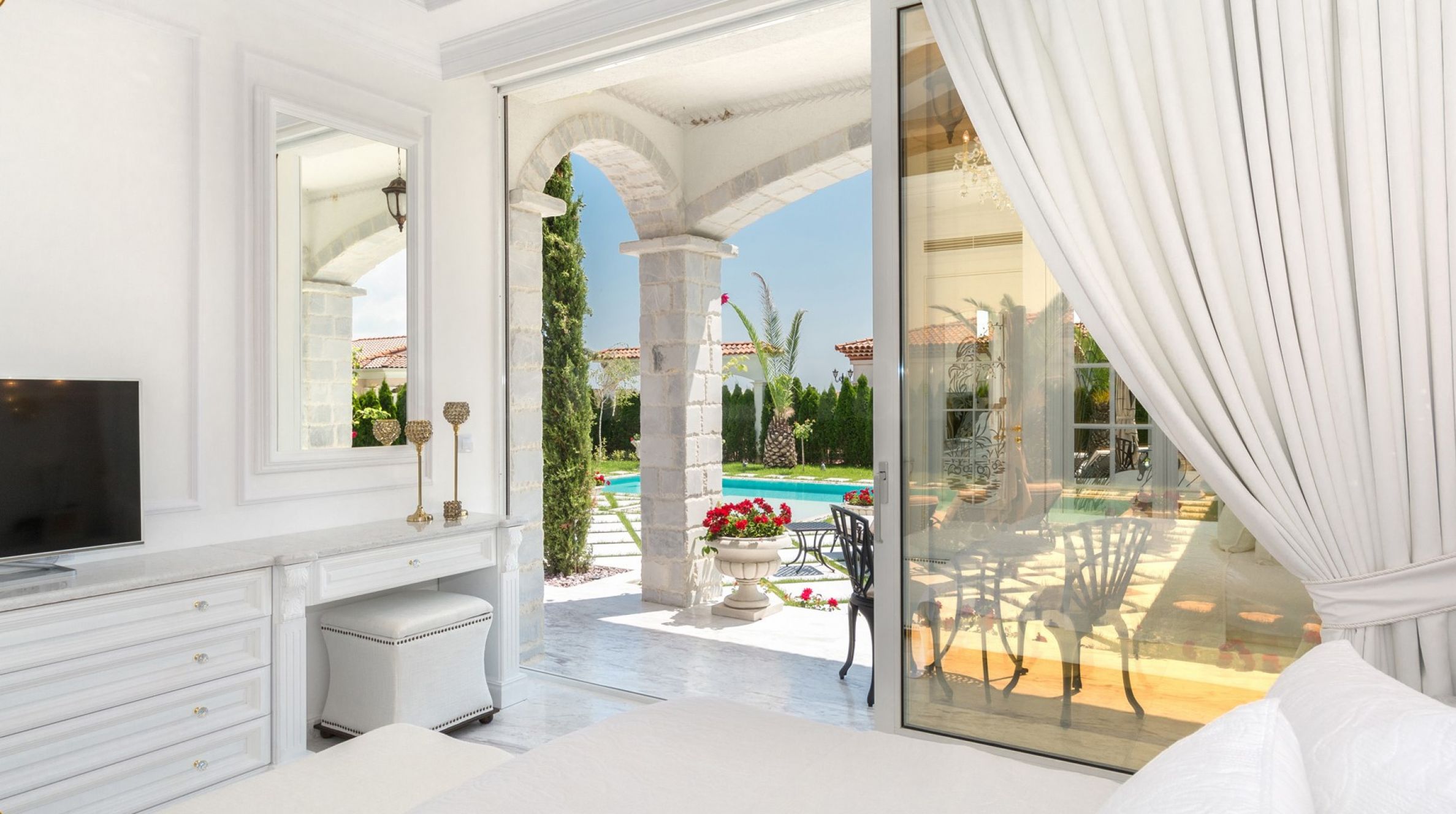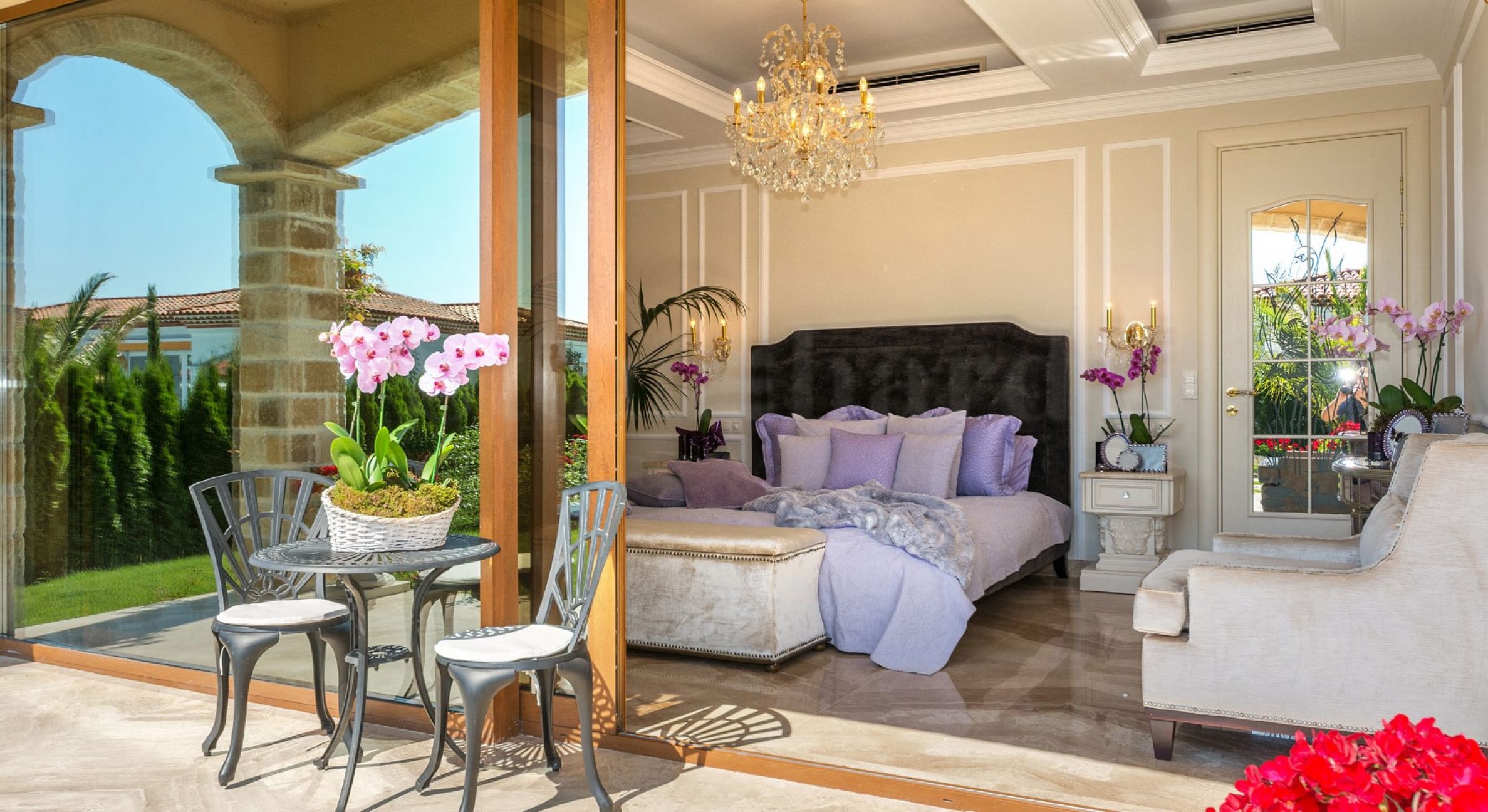 Nemovitost má čtyři dvoulůžkové ložnice s vlastní koupelnou a šatnou. Obývací pokoj „Open Space“ a dvě ložnice mají výhled do vnitřní zahrady domu a k bazénu. V zahradě se nachází velký bazén uprostřed, kompletně obložený přírodním mramorem „Pyrgos Light“. Zahrada je rozsáhlá a bohatě upravená exotickými stromy a květinami.