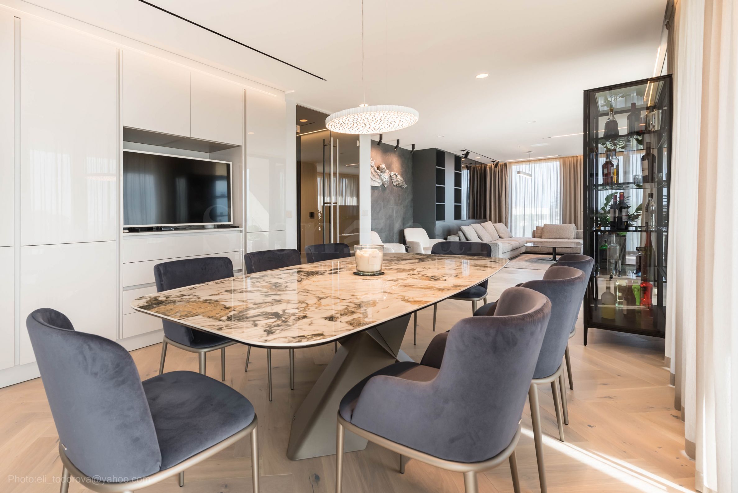 Die Wohnung mit einer Gesamtfläche von 455,90 qm erstreckt sich über die gesamte 5. von insgesamt 6 Etagen und besteht aus vier Zwei- und zwei Dreizimmerwohnungen. Der gesamte Bereich befindet sich auf einer Ebene und bietet von allen Zimmern, einschließlich der Serviceräume, einen außergewöhnlichen Meerblick.