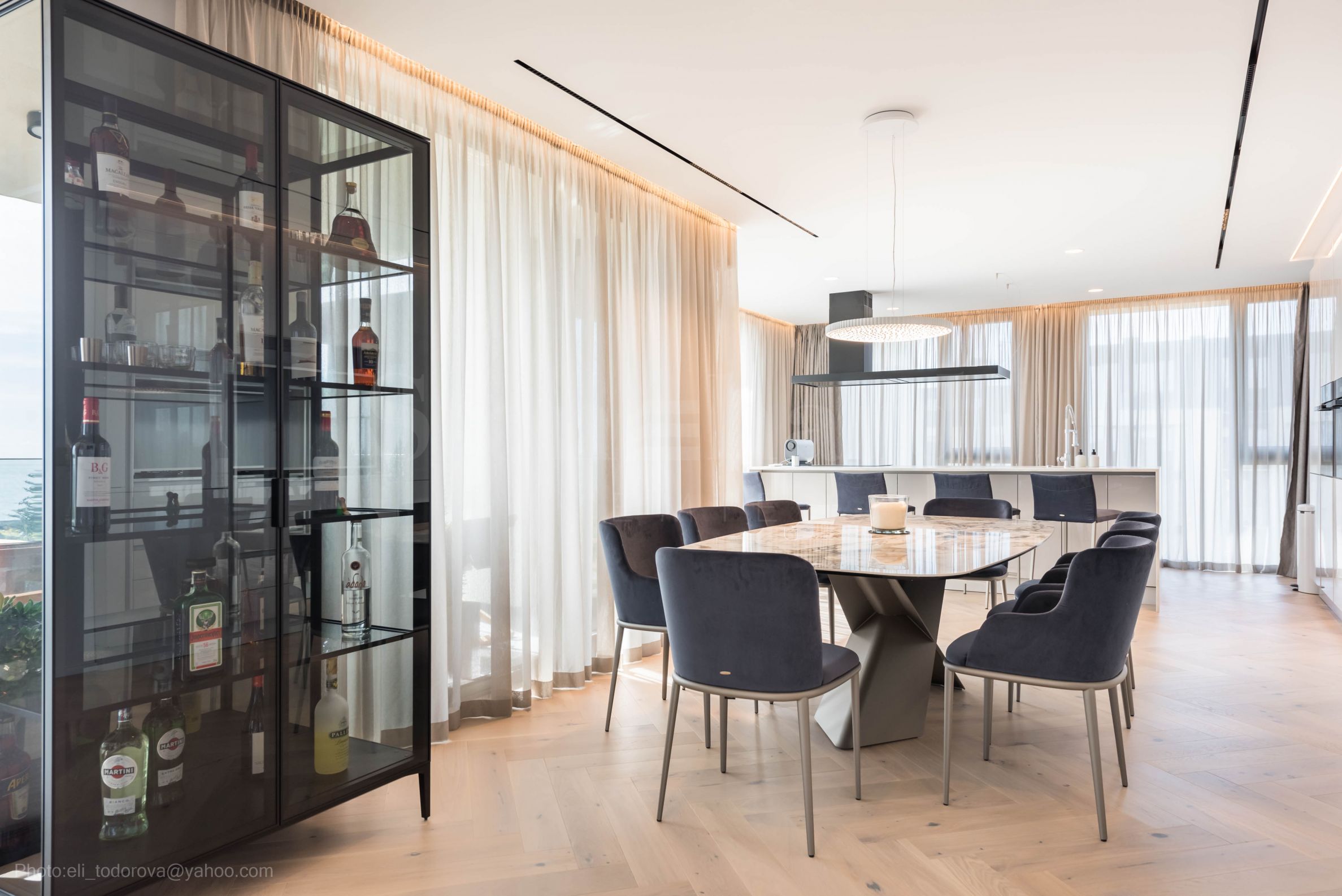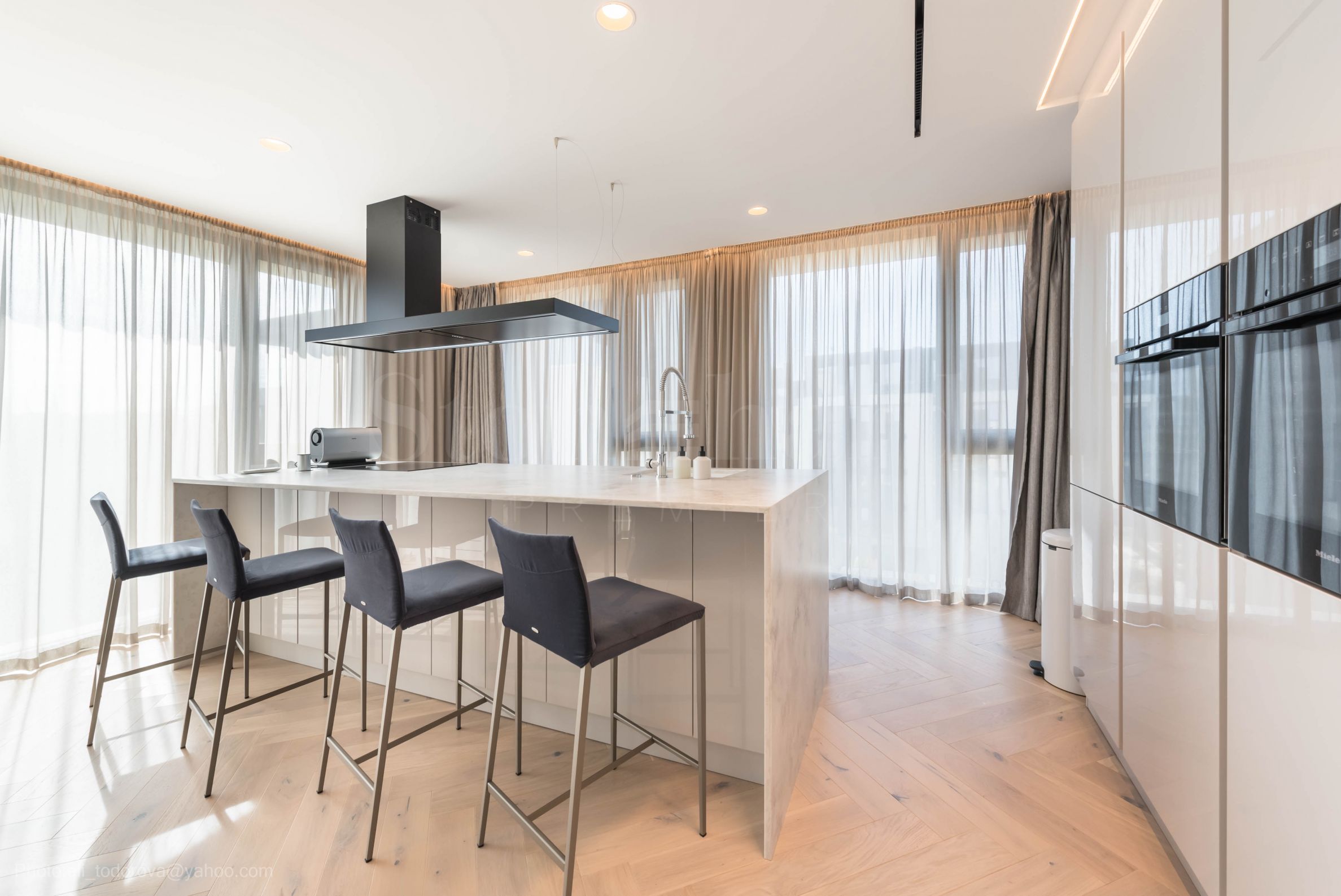Die Wohnung mit einer Gesamtfläche von 455,90 qm erstreckt sich über die gesamte 5. von insgesamt 6 Etagen und besteht aus vier Zwei- und zwei Dreizimmerwohnungen. Der gesamte Bereich befindet sich auf einer Ebene und bietet von allen Zimmern, einschließlich der Serviceräume, einen außergewöhnlichen Meerblick.