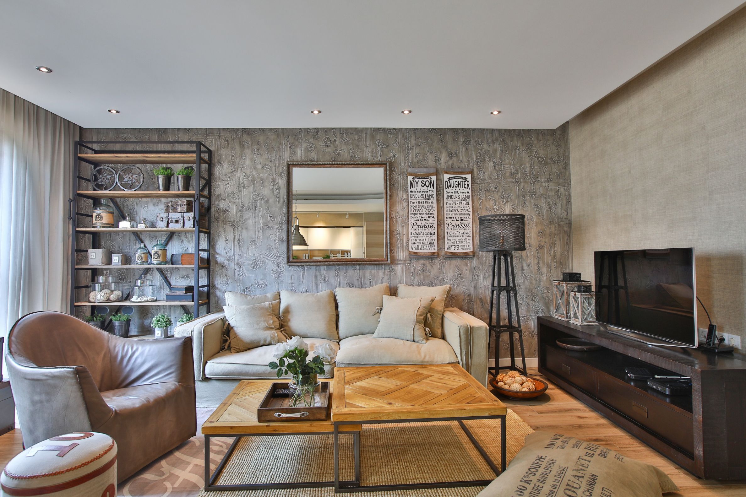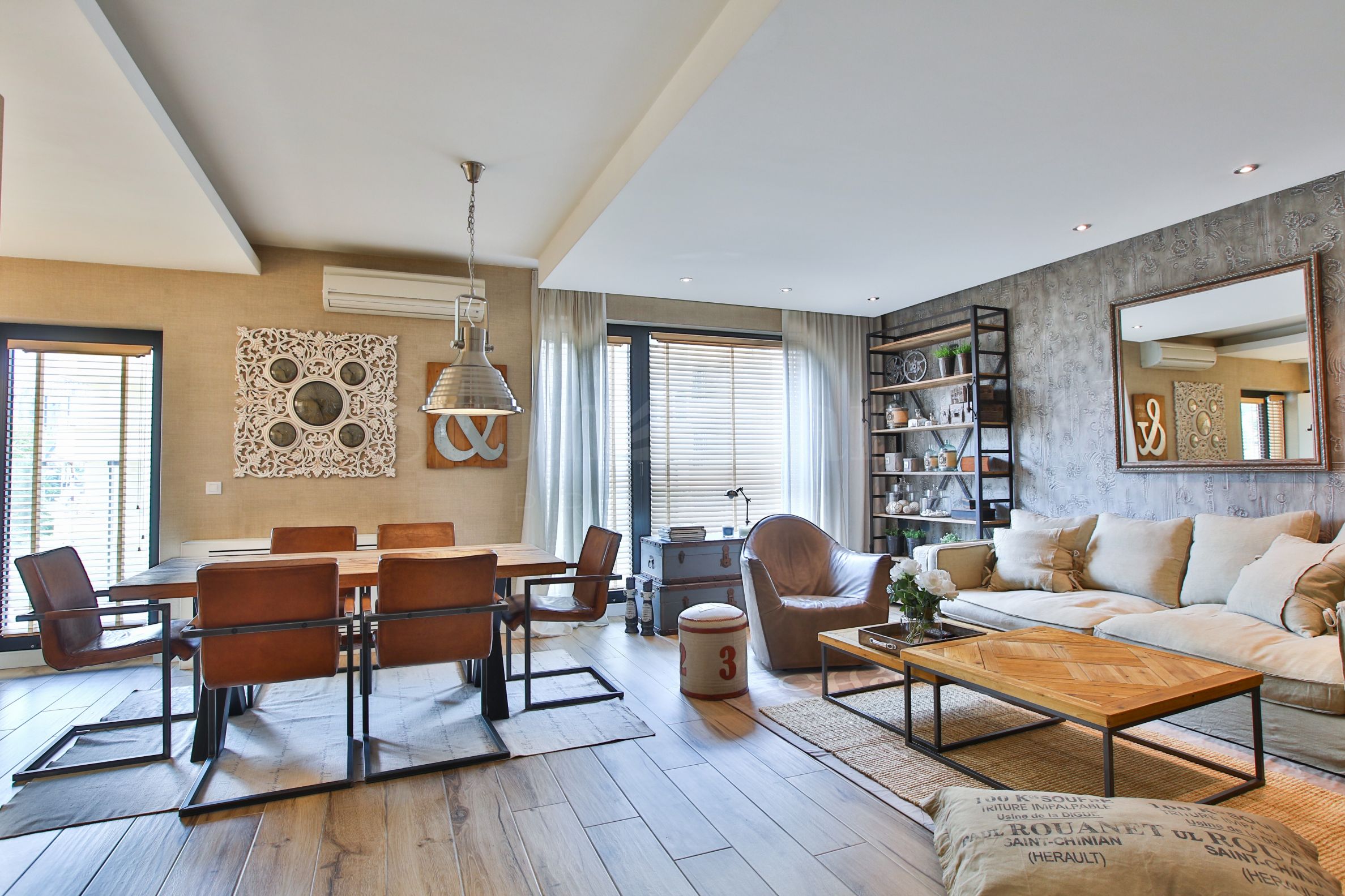 Die Wohnung ist im Vintage-Stil eingerichtet und nach einem Designerprojekt mit hochwertigen Möbeln ausgestattet, die größtenteils auf Bestellung angefertigt werden.