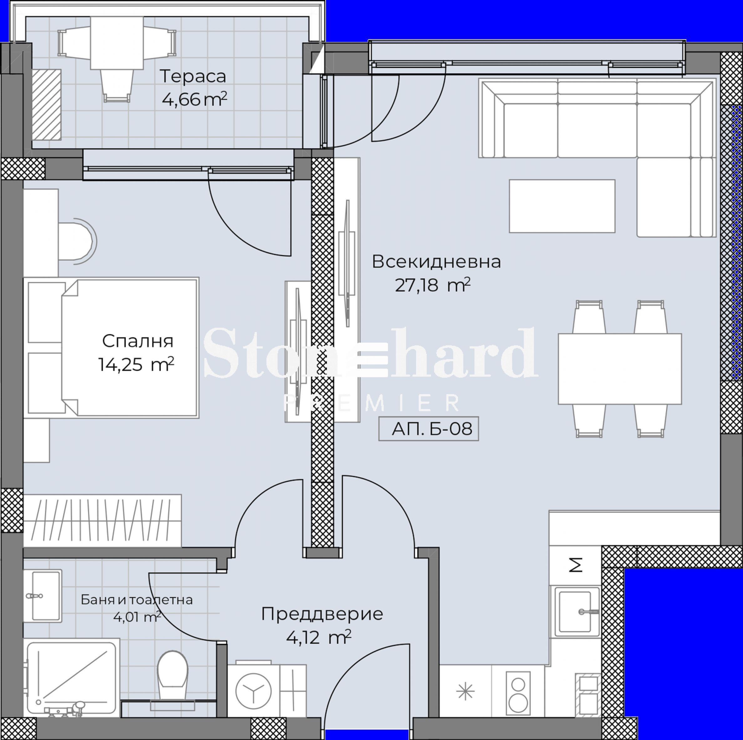 Apartment mit einem Schlafzimmer in einem innovativen Komplex im Viertel „Ostromila“ der Stadt Plovdiv