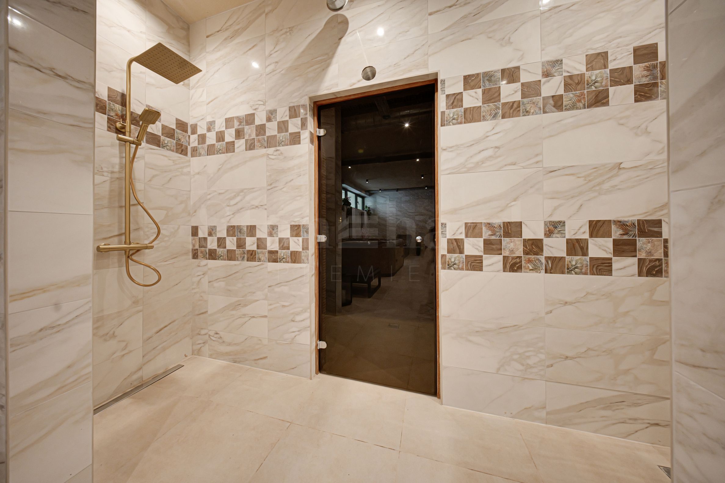 Lobby und Gemeinschaftsbereiche mit einer besonderen Innenausstattung aus Naturstein – Marmor und Onyx;