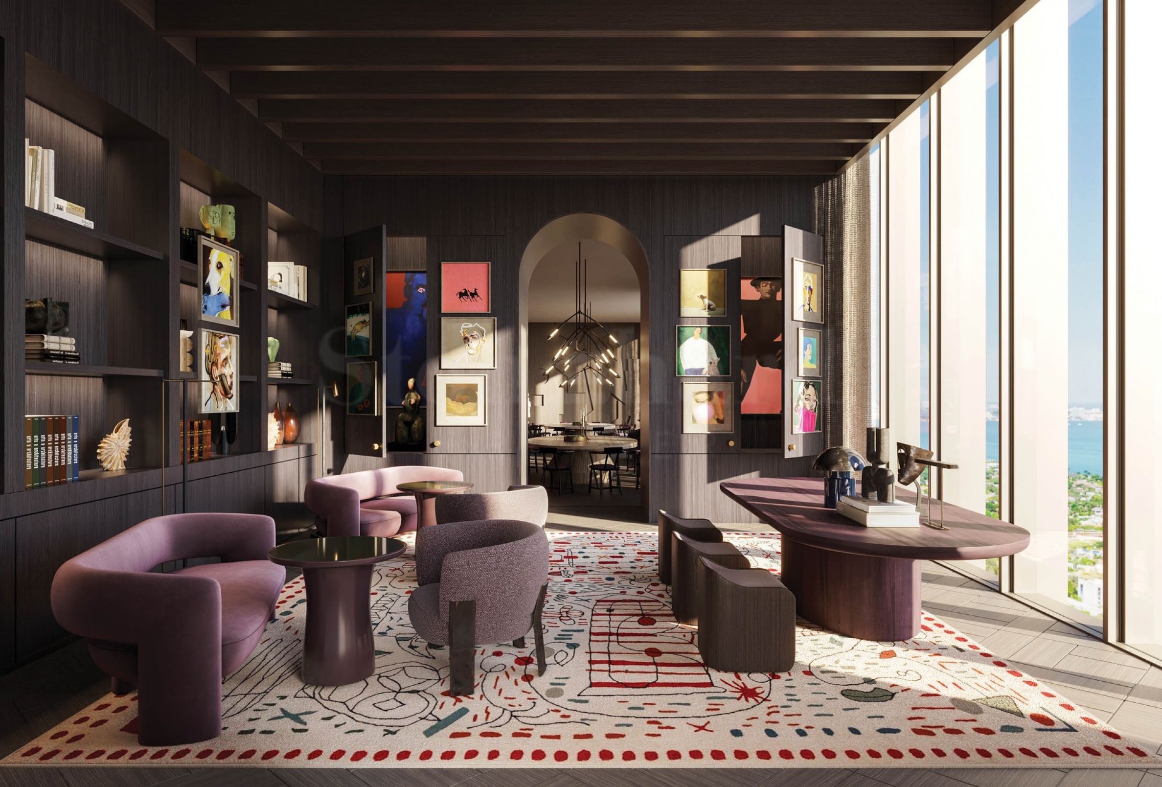 Der Hauptschwerpunkt der Wohnanlage liegt auf hellen, offenen Räumen und einem großzügigen Raumgefühl. Mit der Erstellung des Innenraumkonzepts wurde das weltbekannte Designstudio Yabu Pushelberg betraut, das sich mit seinen außergewöhnlichen Projekten in Miami etabliert hat. In Zusammenarbeit mit dem berühmten Jean Georges entwickelten sie das Dusk and Dawn-Konzept – ein raffiniertes Spiel zwischen hellen und dunklen Farbtönen, inspiriert von den Übergängen des Tages – von den ersten Strahlen der Morgendämmerung bis zum Einbruch der Abenddämmerung. Dieser Ansatz zieht sich durch die gesamte Innenarchitektur, ist aber am stärksten in der Gestaltung der Residenzen präsent.