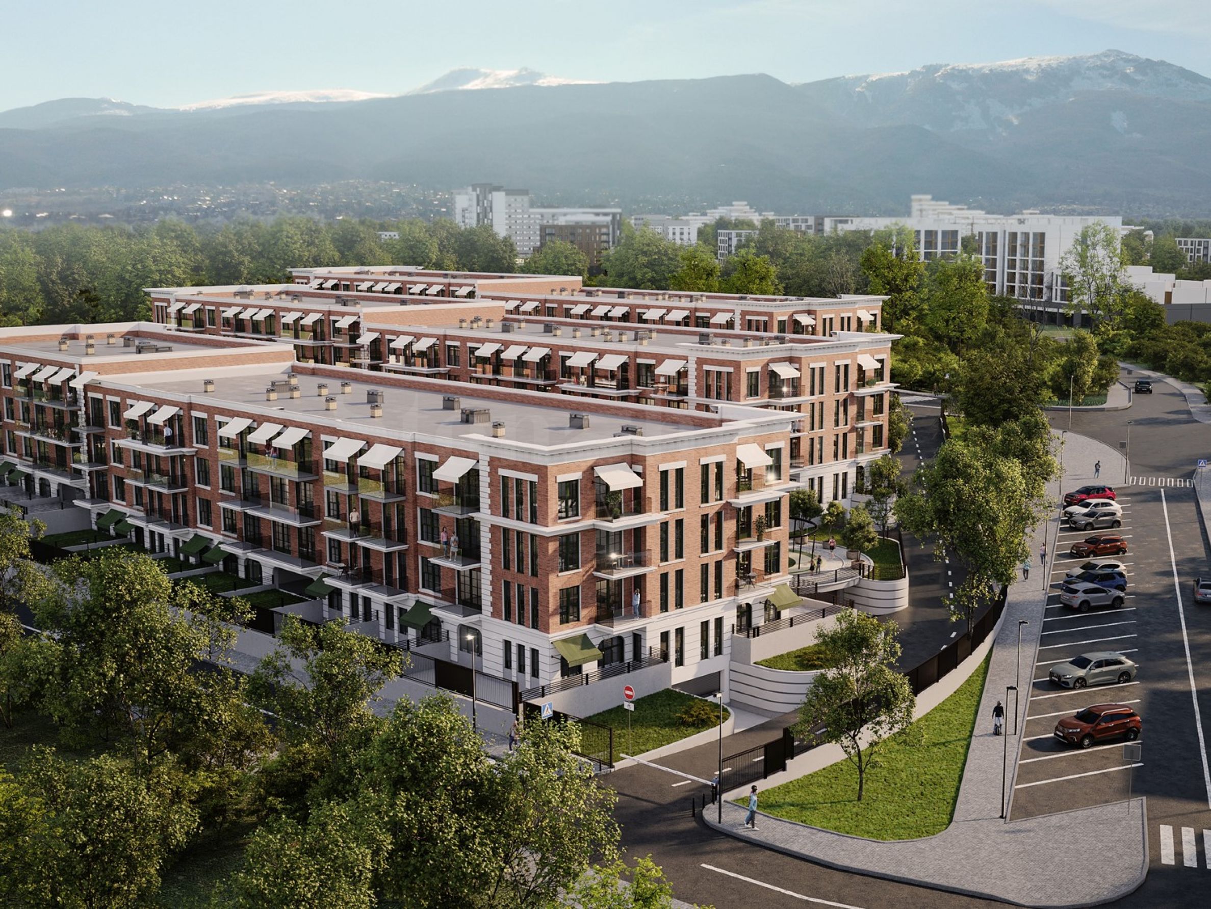 Es besteht aus drei vierstöckigen Gebäuden und einem eigenen Park mit einer Fläche von 1.500 m². Die üppige Landschaftsgestaltung und der autofreie Bereich bieten den Bewohnern eine ruhige Atmosphäre. Die Wohnungen sind funktional gestaltet und bieten eine günstige Lage. Die meisten bieten einen Blick auf das Witoschagebirge.