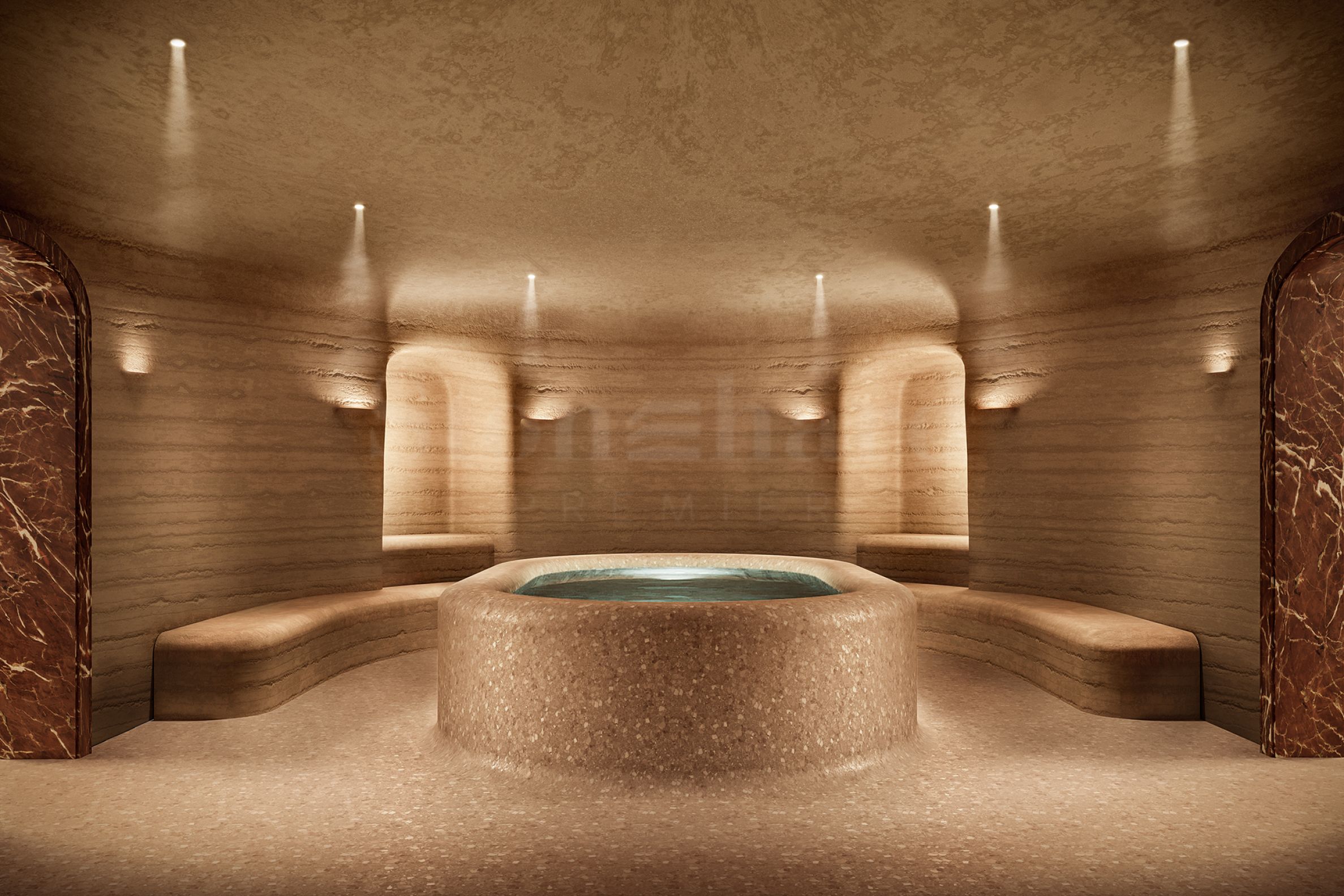 Für die Inneneinrichtung der Lobby, der Zimmer und der Gemeinschaftsbereiche ist das Designbüro Meyer Davis zuständig, das natürliche Materialien wie Holz, Stein und Marmor verwendet und so eine elegante und friedliche Atmosphäre schafft, die das Wohngebäude mit der Natur verbindet. Diese erdigen Elemente sorgen nicht nur für optische Schönheit, sondern vermitteln auch ein Gefühl von Erdung und Behaglichkeit.
