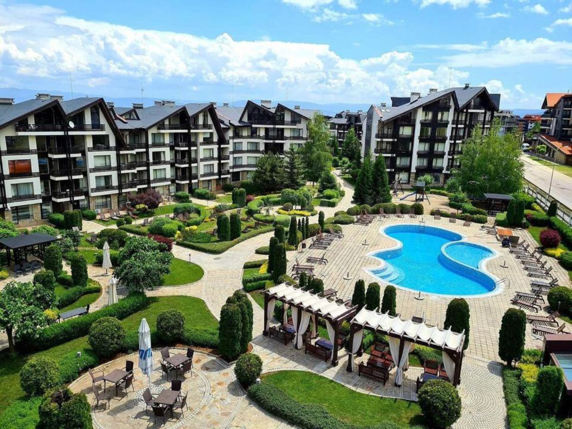 Der Komplex ist ganzjährig geöffnet und liegt 7 km vom Skigebiet Bansko, 0,500 m vom Pirin Golf and Country Club und 3 km von den städtischen Annehmlichkeiten von Razlog entfernt.