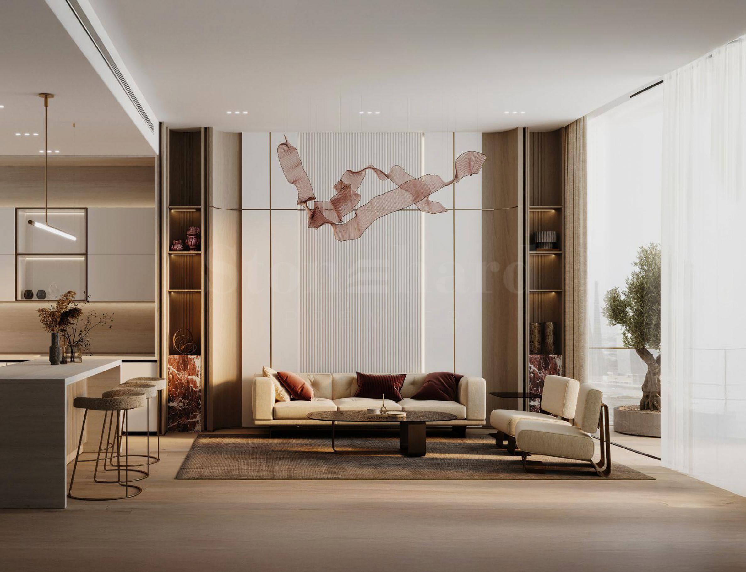 Die exklusive Anlage bietet eine anspruchsvolle Auswahl an Studios sowie 1- und 2-Zimmer-Apartments. Mit markanter symmetrischer Architektur und hochwertiger Ausstattung wurde jede Wohnung des Komplexes sorgfältig mit raumhohen Fenstern gestaltet, die den Innenraum mit natürlichem Licht durchfluten – eine nahtlose Verbindung moderner Eleganz mit intelligenter, funktionaler Raumaufteilung für den Alltag. Ausgewählte 2- und 3-Zimmer-Wohnungen verfügen über einen eigenen Pool.