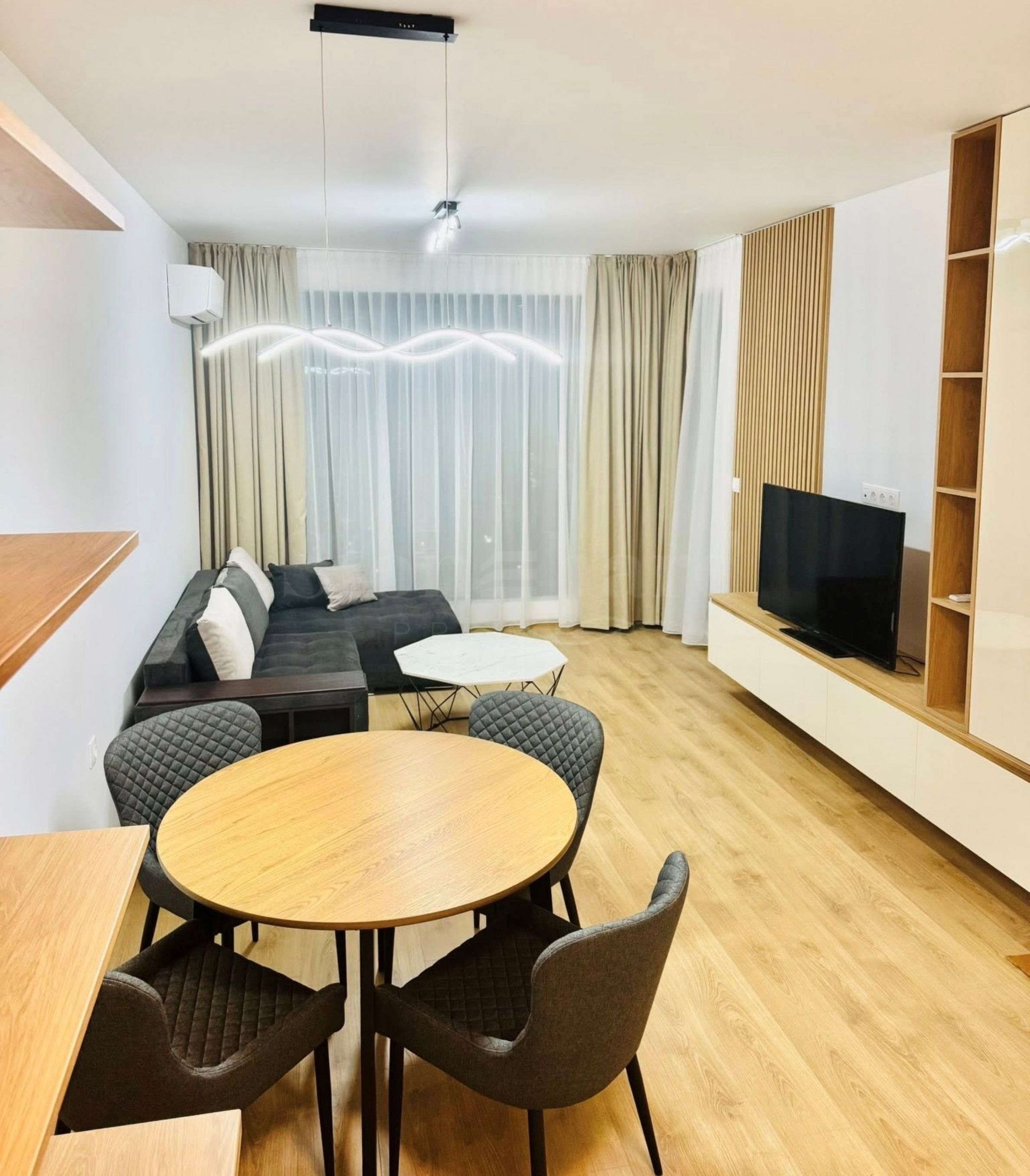 Die Wohnung wird schlüsselfertig mit neuen Möbeln und energieeffizienten Elektrogeräten (mit Garantie) sowie Aluminiumfenstern und -türen (Reynaers CS 77) verkauft. Heizung und Kühlung erfolgen über Daikin Inverter-Klimaanlagen in jedem Zimmer.