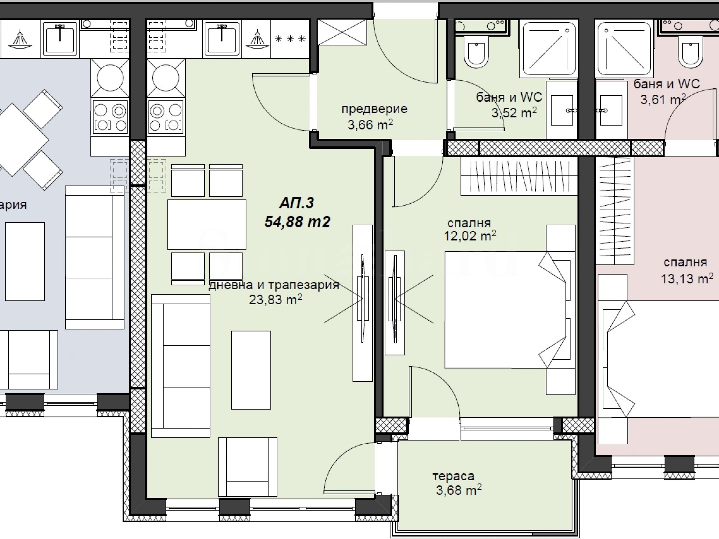Die Wohnungen werden in einem nach bulgarischen Baustandards fertiggestellten Zustand, mit Putz und Estrich, vermietet.