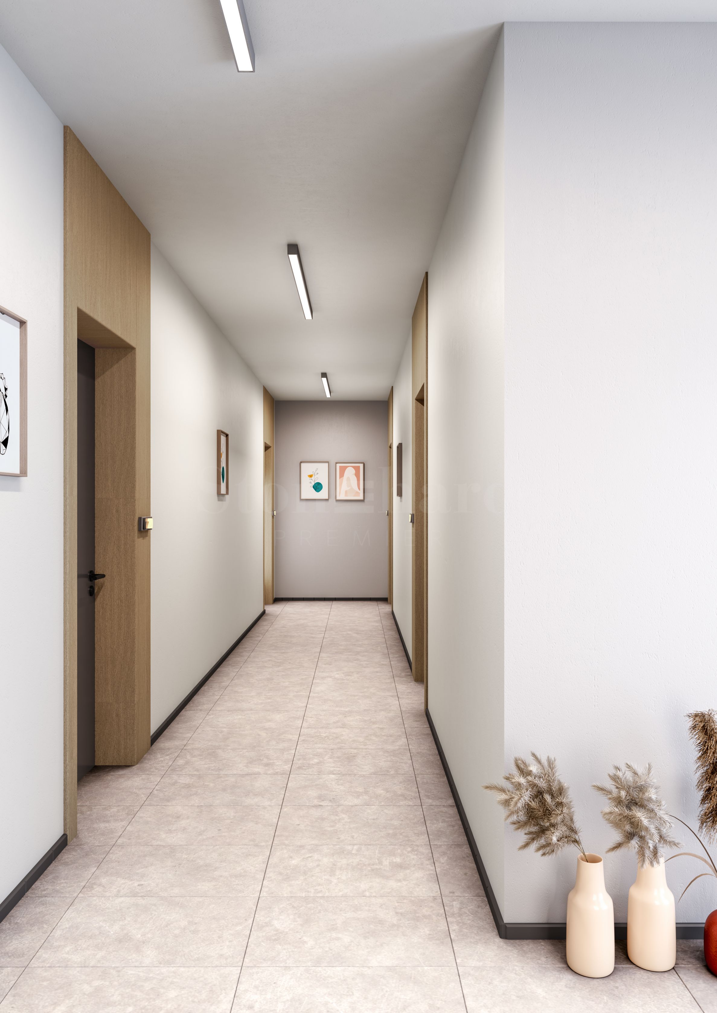 Gemeinschaftsbereiche – Latexwände, Granitböden, Metallgeländer, Beleuchtung mit Bewegungsmeldern;