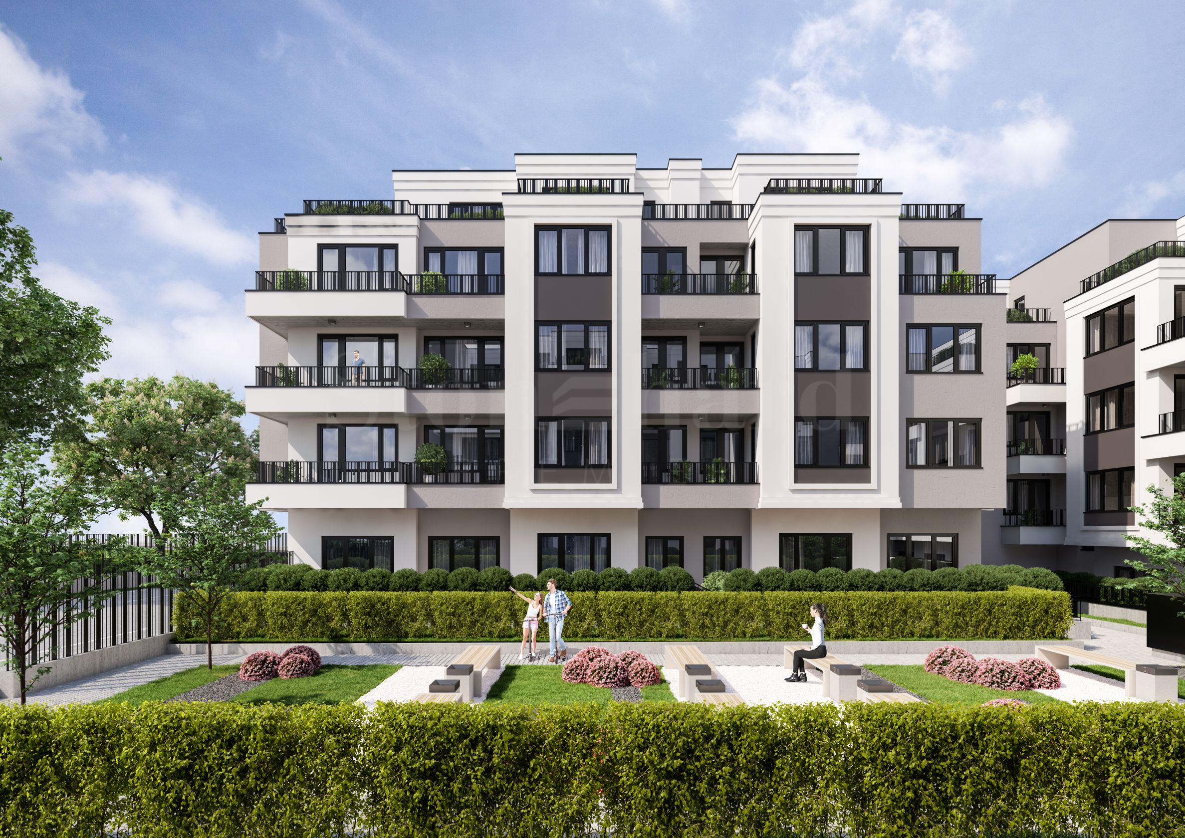 Die Wohnungen verfügen über eine optimale Raumaufteilung und Ausrichtung, sodass sie tagsüber maximales Sonnenlicht und einen herrlichen Blick auf das Vitosha-Gebirge bieten. Parkplätze stehen in Tiefgaragen und auf dem Gelände zur Verfügung. Für zusätzlichen Komfort der Bewohner befinden sich im Untergeschoss des Gebäudes Abstellräume.