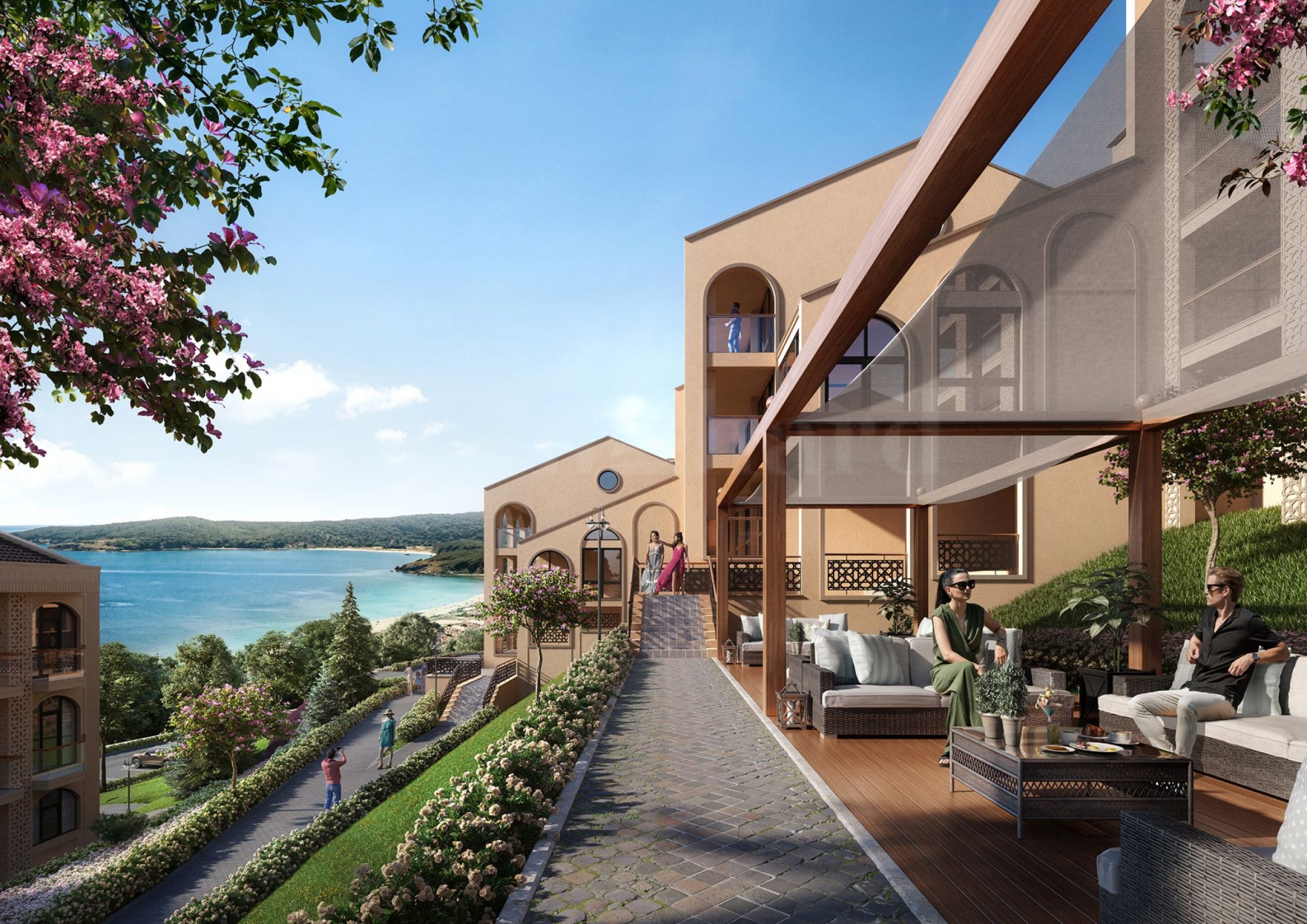 Der Komplex besteht aus drei Wohngebäuden mit insgesamt 74 Wohnungen und einem Boutique-Hotel. Studios, Apartments mit 1, 2, 3 und 4 Schlafzimmern, von 37 m² bis 190 m² Nettofläche. Geräumige Stadthäuser mit Garagen sind ebenfalls verfügbar.