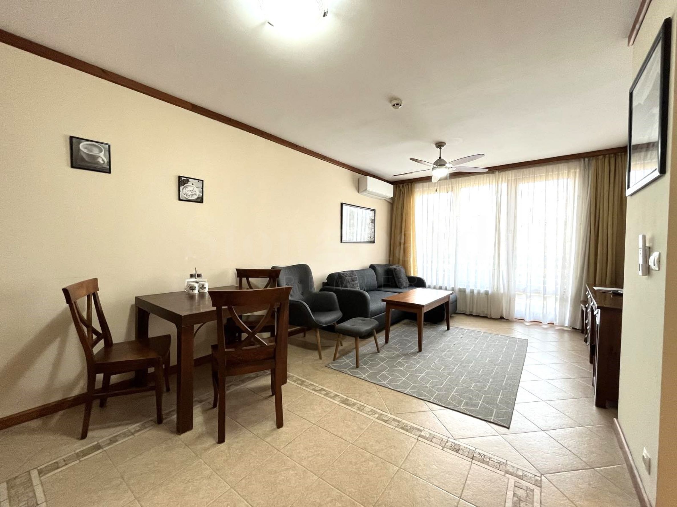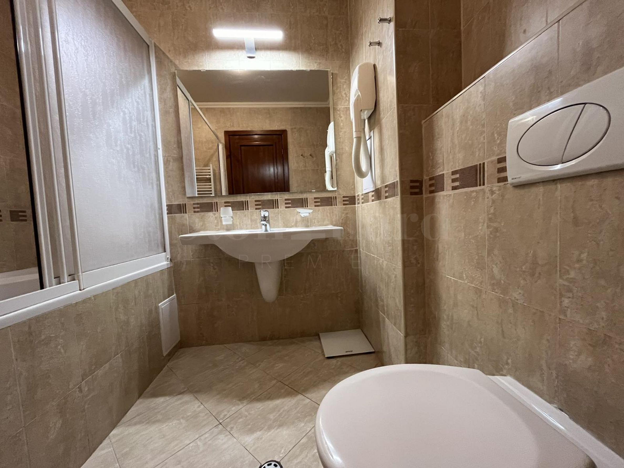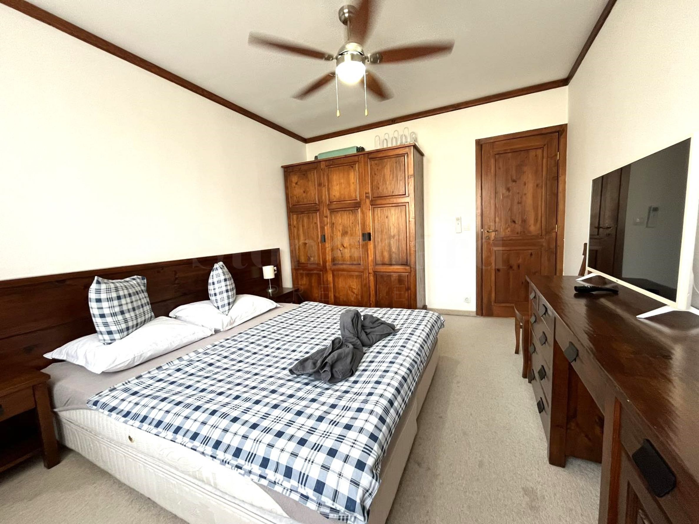 Die Wohnung befindet sich in einem Haus hinter dem Hauptgebäude. Jedes Haus verfügt über: einen Massagebereich, eine Sauna, ein Dampfbad, einen Skiraum, einen großen Grill mit Kamin, einen Billardtisch. Alle diese Extras sind nur für Eigentümer bestimmt. Die Eigentümer genießen die frische Bergluft und die Aussicht auf Pirin. Das charmante Interieur vermittelt das Gefühl von heimeliger Behaglichkeit.