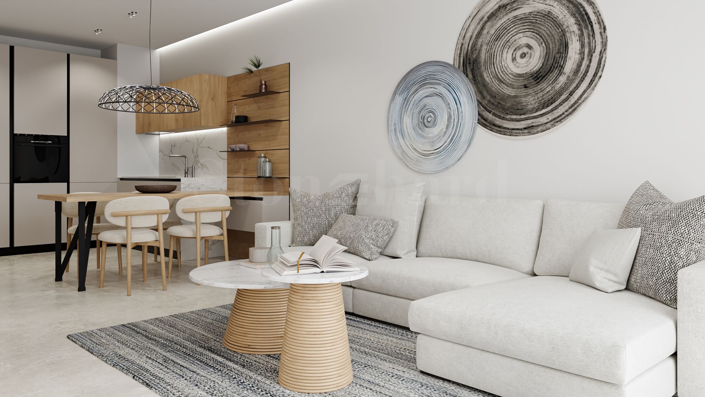 In der dritten Reihe vom Strand entstehen vier dreigeschossige Gebäude mit Terrassen, die geräumige Drei- und Vierzimmerwohnungen bieten – nur 100 Meter Luftlinie vom Meer entfernt. Die Wohnungen werden verputzt und mit Estrich versehen angeboten, optional können sie möbliert werden.