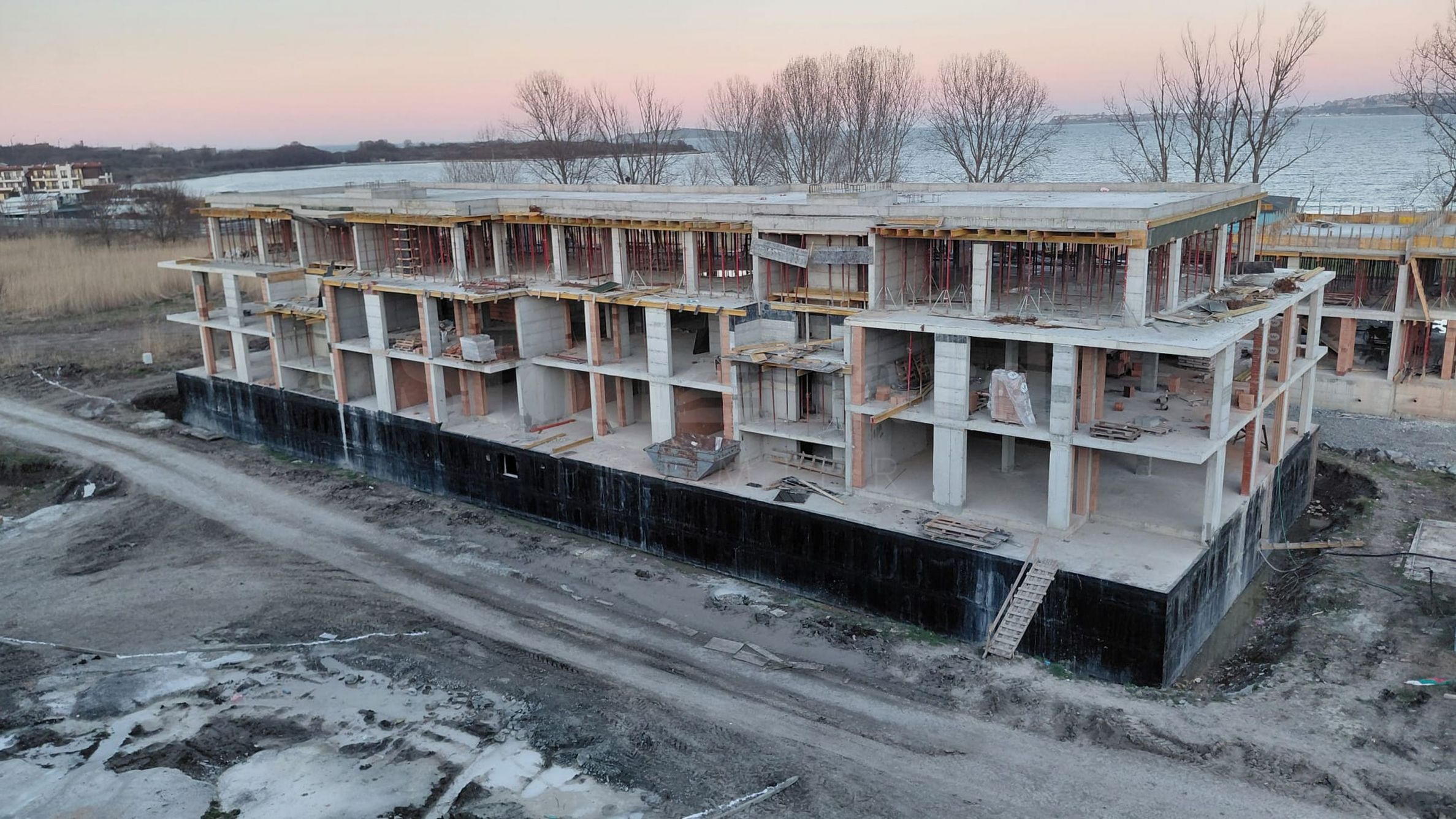 In der vierten Küstenlinie, nur 200 Meter Luftlinie vom Meer entfernt, wurden 5 Gebäude mit Schwimmbädern entworfen, jedes mit 4 Etagen plus Terrasse, mit kleineren Apartments - Studios und Zwei-Zimmer-Wohnungen, die sich im Fertigstellungszustand nach bulgarischen Baustandards befinden und optional möbliert werden können.