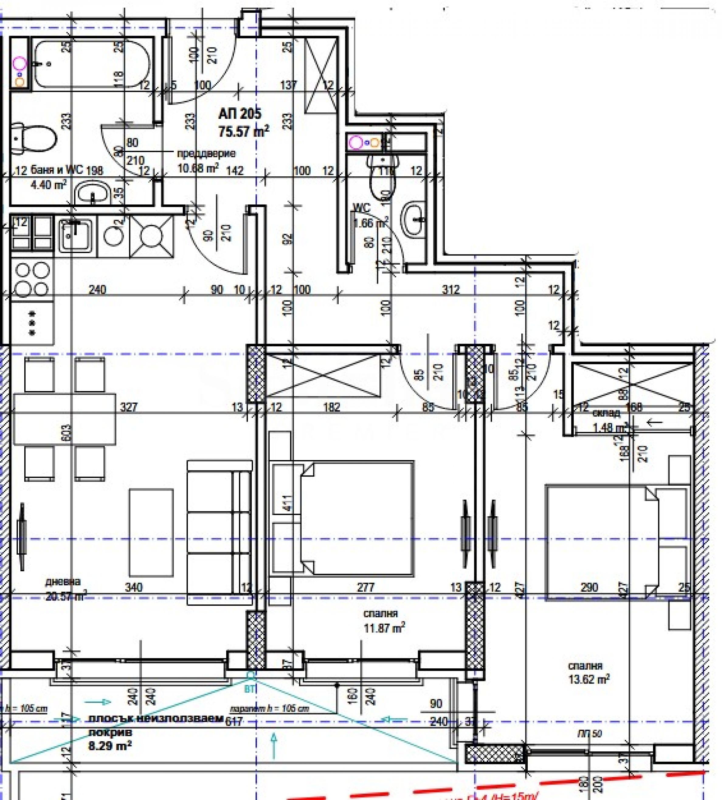 Dreizimmerwohnung in einem Neubau in der Nähe des Blvd. „Wladimir Wasow“