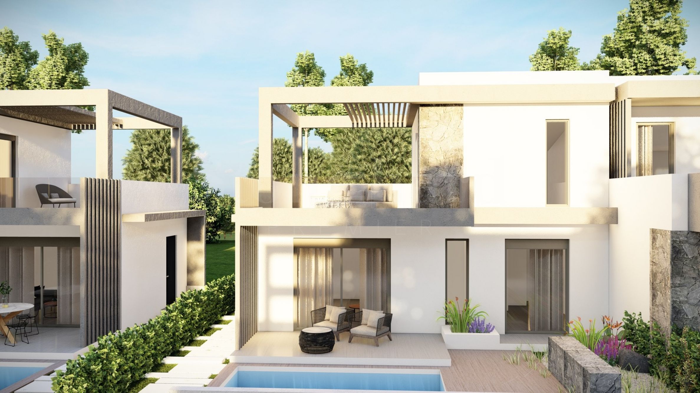 Der Komplex besteht aus 20 Sommerresidenzen und befindet sich in ruhiger und friedlicher Lage im Ferienort. Die Wohnungen verfügen über elegante, wunderschön gestaltete Fassaden, die helle Töne und natürliche Materialien kombinieren und so ein Gefühl von Luxus und Komfort vermitteln. Die Grundrisse der Häuser sind auf maximalen Komfort ausgelegt und große Fenster sorgen für viel Tageslicht in den Räumen. Die Häuser verfügen außerdem über großzügige Balkone, die der perfekte Ort sind, um sich mit Freunden zu treffen und nette Gespräche unter dem Sternenhimmel zu führen. Ausgewählte Häuser verfügen über einen Außenpool direkt neben der Veranda, der neben der Möglichkeit für ein kühles Bad auch ein hervorragender Ort für Familienunterhaltung und Spiele mit Kindern ist.