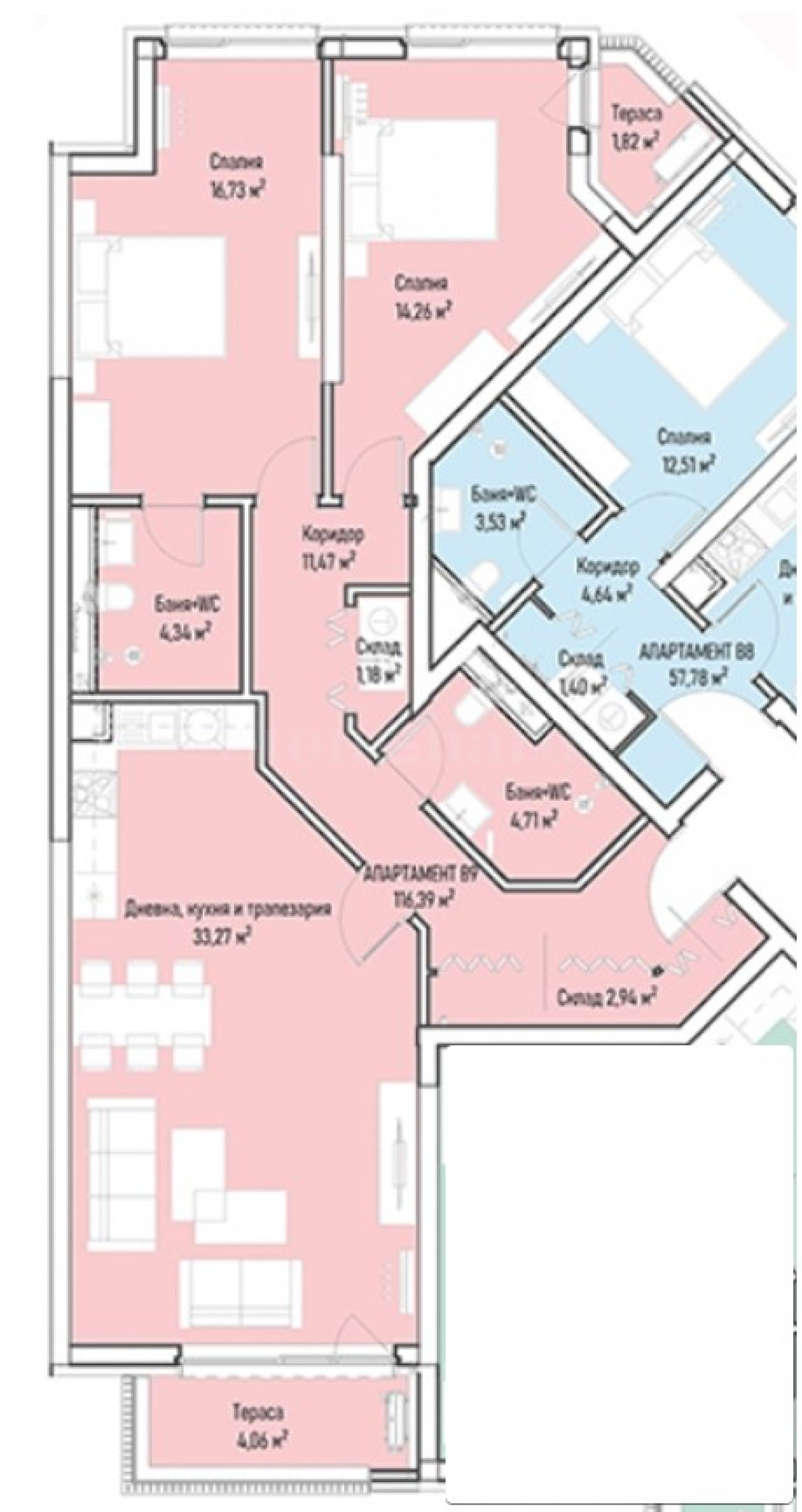 Wir bieten eine Dreizimmerwohnung zum Verkauf an, die Teil eines neuen Wohnkomplexes in äußerst zentraler Lage im Stadtteil „Mladost 4“ ist. Der Komplex bietet eine ruhige Wohnatmosphäre und eine gute Anbindung an das Zentrum und alle wichtigen Orte der Hauptstadt. In unmittelbarer Nähe befinden sich die Metrostation „Business Park“ sowie die Geschäfte „Kaufland“, „Fantastico“, „Technopolis“, „Sport Depo“ und „KOMO“.