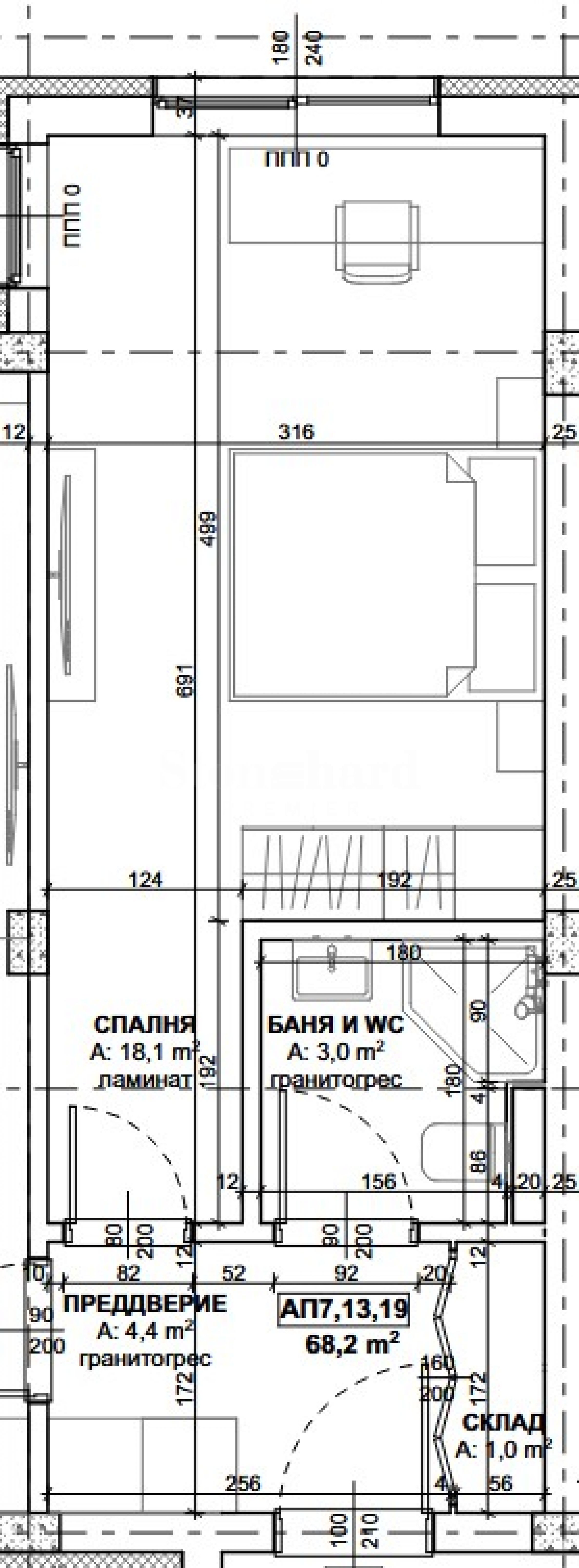 Es wird im Fertigstellungsgrad gemäß den bulgarischen Baunormen für Kitt und Estrich ausgestellt.
