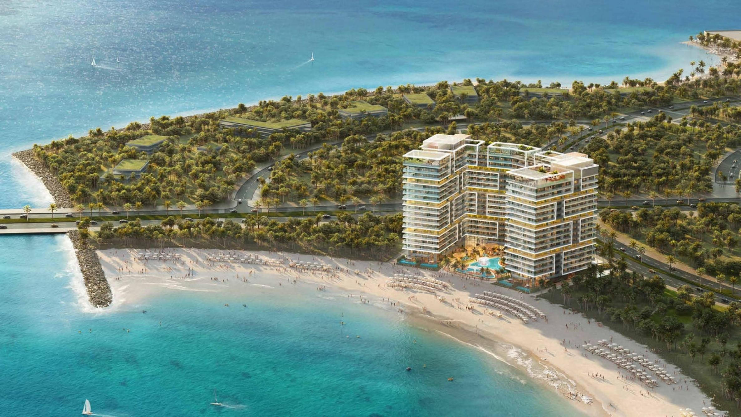 Das Projekt umfasst Wohnungen mit 1 bis 3 Schlafzimmern, die einzigartiges Innendesign und hochwertige Ausstattung vereinen. Bei der Gestaltung stehen Großzügigkeit und Freiheit im Vordergrund. Große Fenster bieten eine unglaubliche Aussicht auf den Arabischen Golf und ergänzen die offenen Räume. Der Innenraum zeichnet sich durch hochwertige Materialien, elegante Linien und einladende warme Töne aus und sorgt dafür, dass jeder Bereich sowohl stilvoll als auch funktional ist. Egal, ob Sie Gäste unterhalten oder entspannen, die helle, luftige Atmosphäre und die intelligente Raumaufteilung versprechen ein Erlebnis, das Eleganz mit Komfort verbindet.