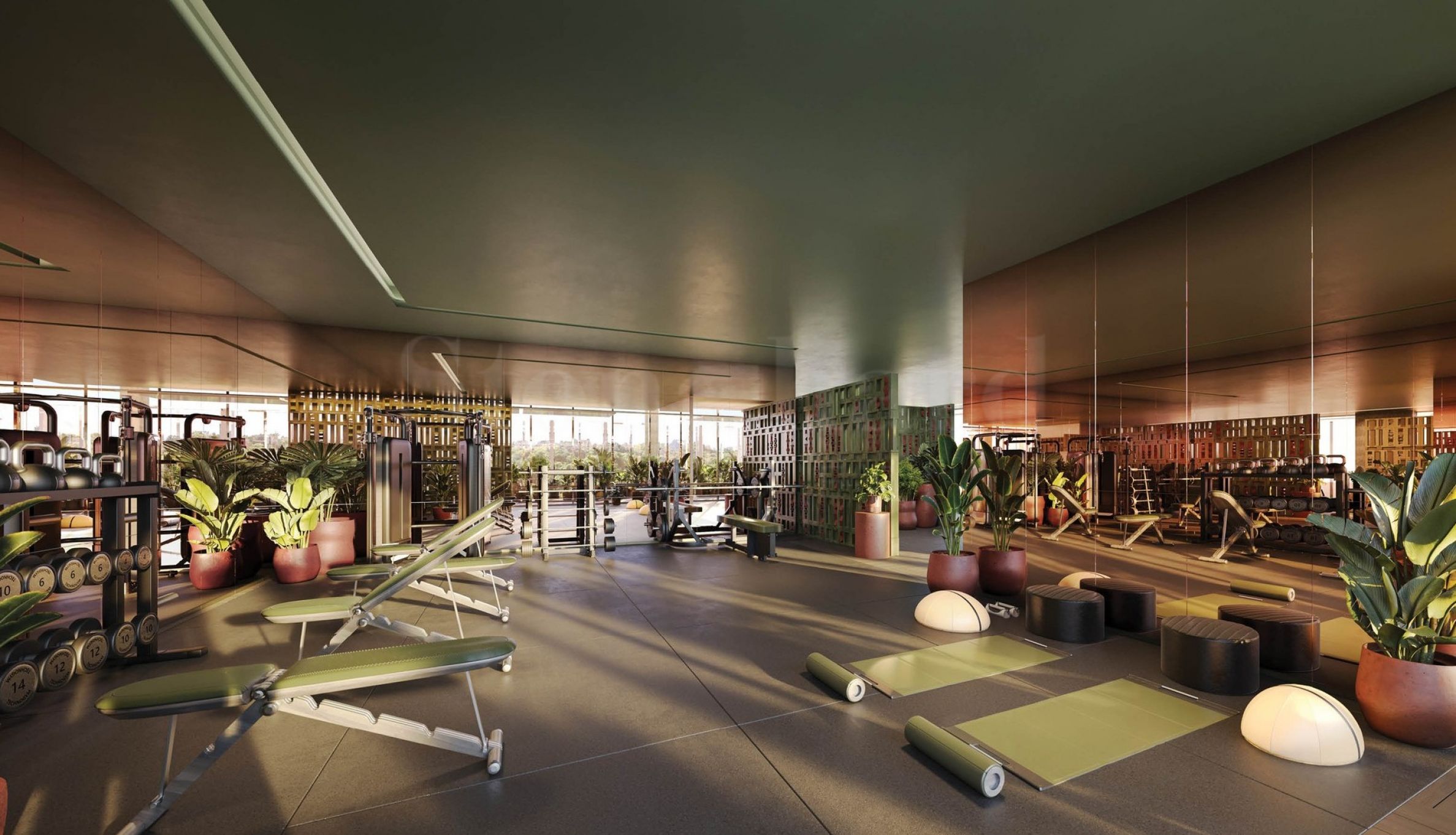 Darüber hinaus zielt das Gebäudekonzept nicht nur auf den physischen Komfort ab, sondern auch auf die Stärkung des Geistes und die Bereitstellung von Möglichkeiten für kulturelle Erlebnisse. Daher finden Sie hier einen Garten mit Skulpturen und Kunstwerken sowie eine Kunstgalerie, in der Ausstellungen und verschiedene Veranstaltungen stattfinden.