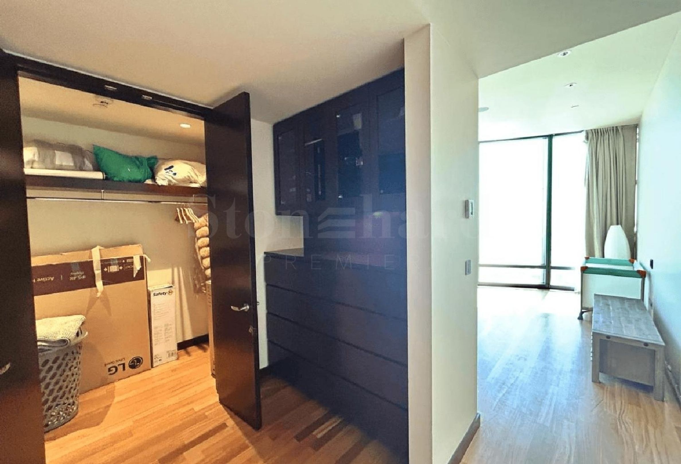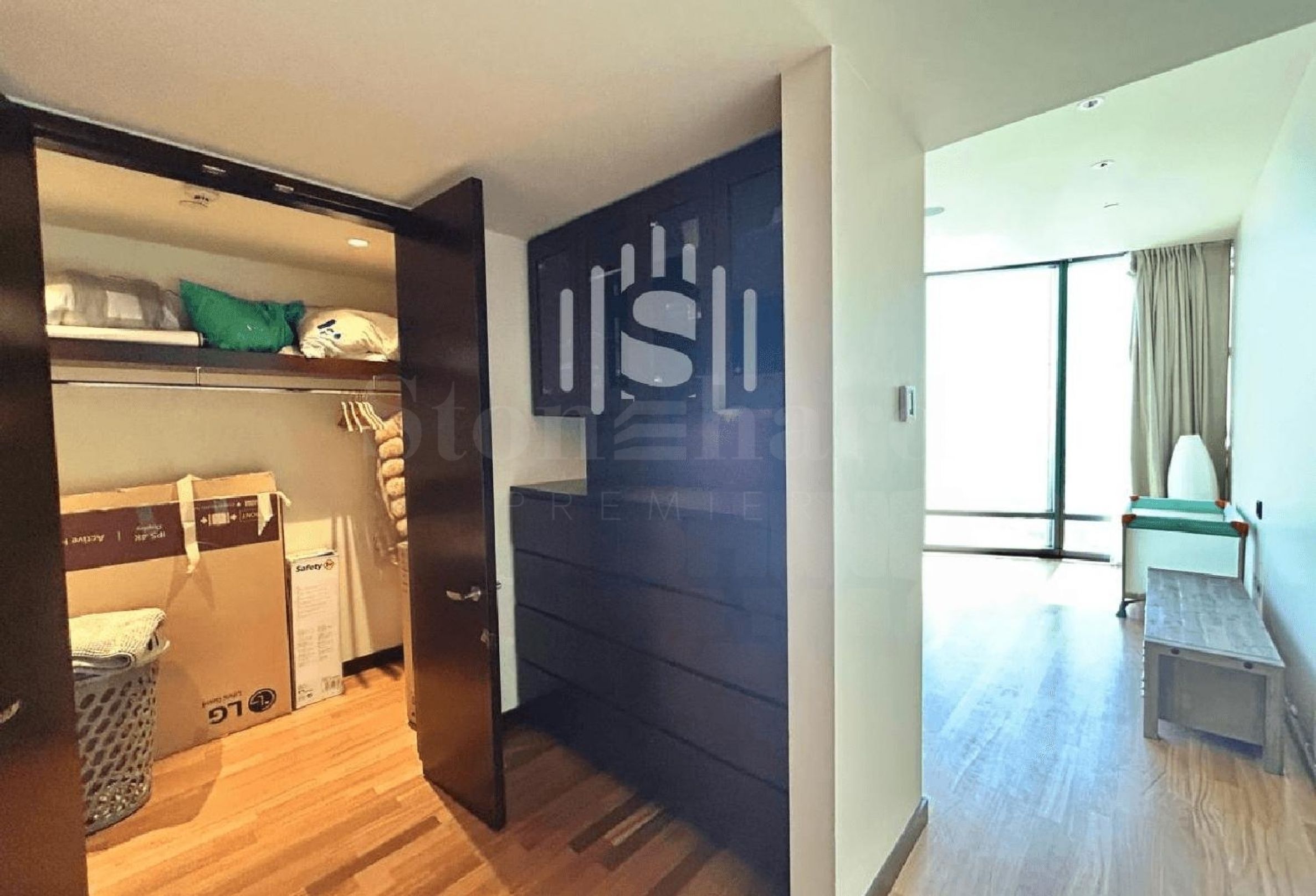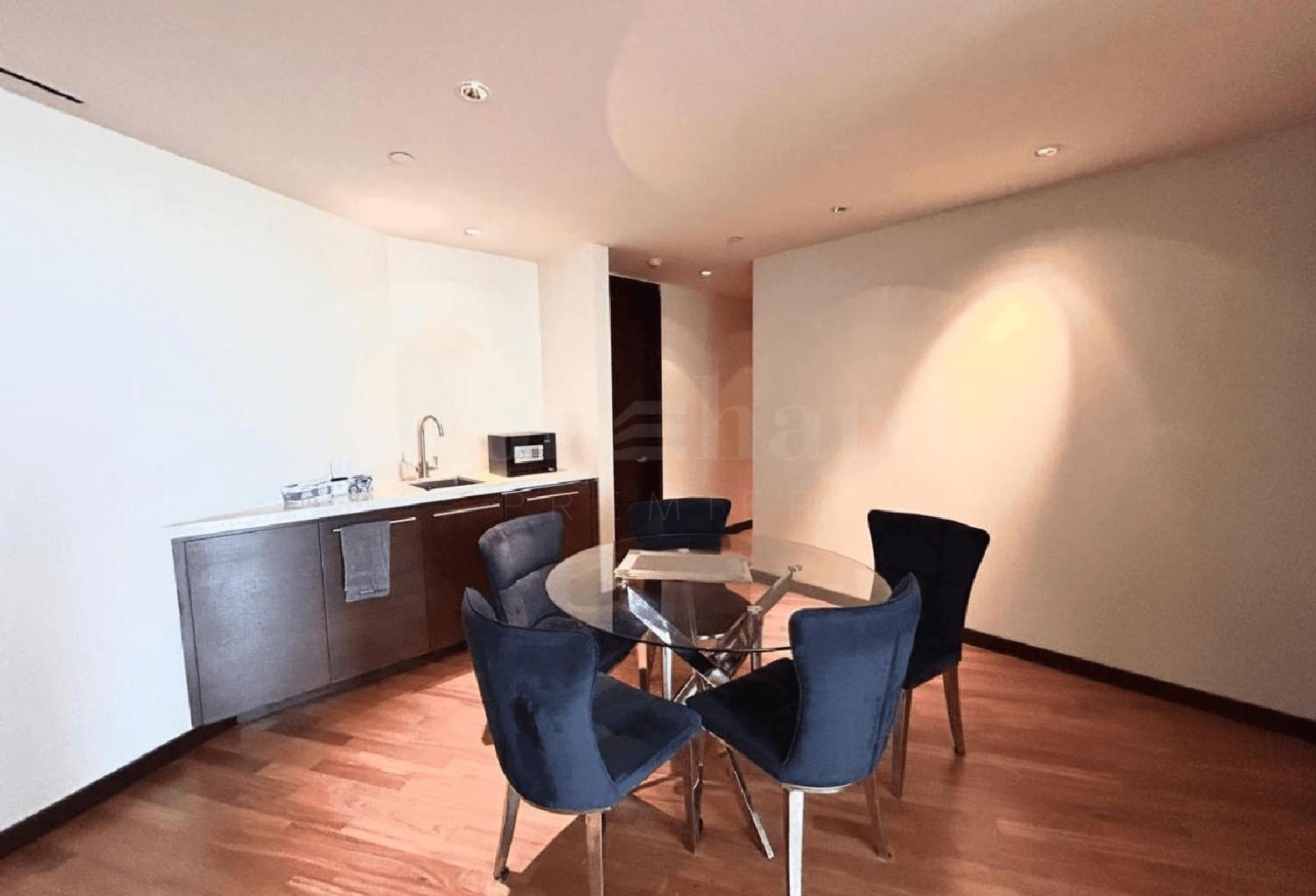 Diese Immobilie befindet sich in einem oberen Stockwerk und bietet einen atemberaubenden Blick auf den Brunnen. Sie ist derzeit leerstehend und wird voll möbliert angeboten. Die Wohnung verfügt über einen geräumigen begehbaren Kleiderschrank und ein separates Personalzimmer, das viel Stauraum und Wohnraum bietet.