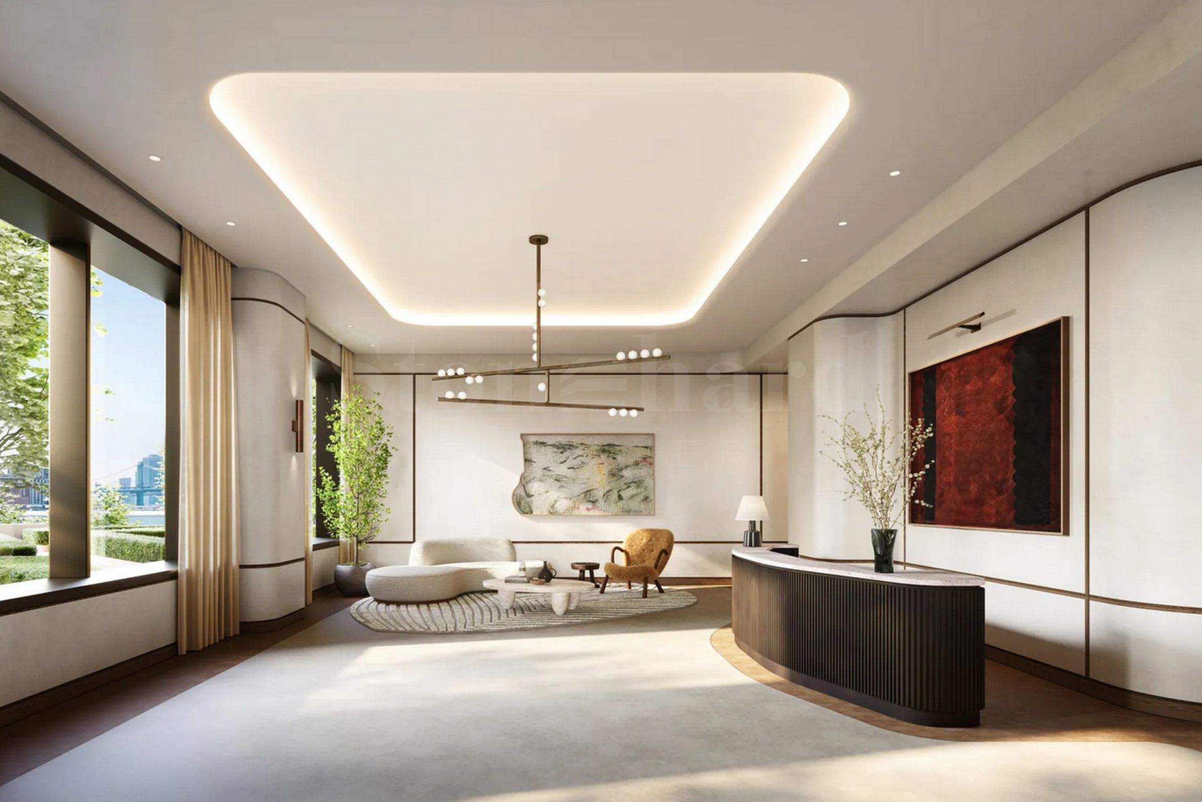 At One Williamsburg Wharf, interior spaces are crafted to support ultimate comfort, productivity, and leisure. Residents enjoy access to private lounges, entertainment rooms, a cinema, library, coworking areas, and tranquil garden retreats designed for meditation, focus, inspiration — or simply enjoying the sunrise over the river. Whether hosting a meeting or sharing a glass of wine with friends, the ambiance is always refined, inviting, and inspiring.