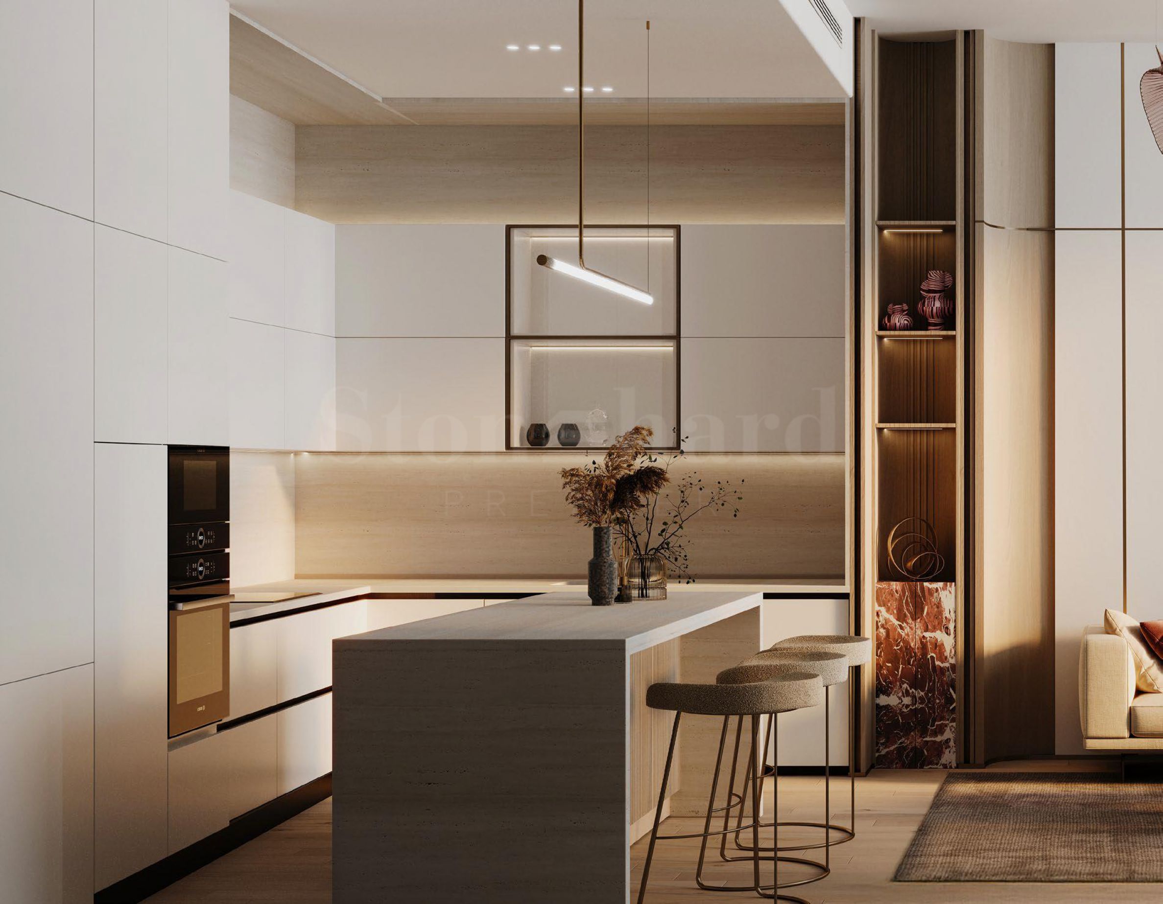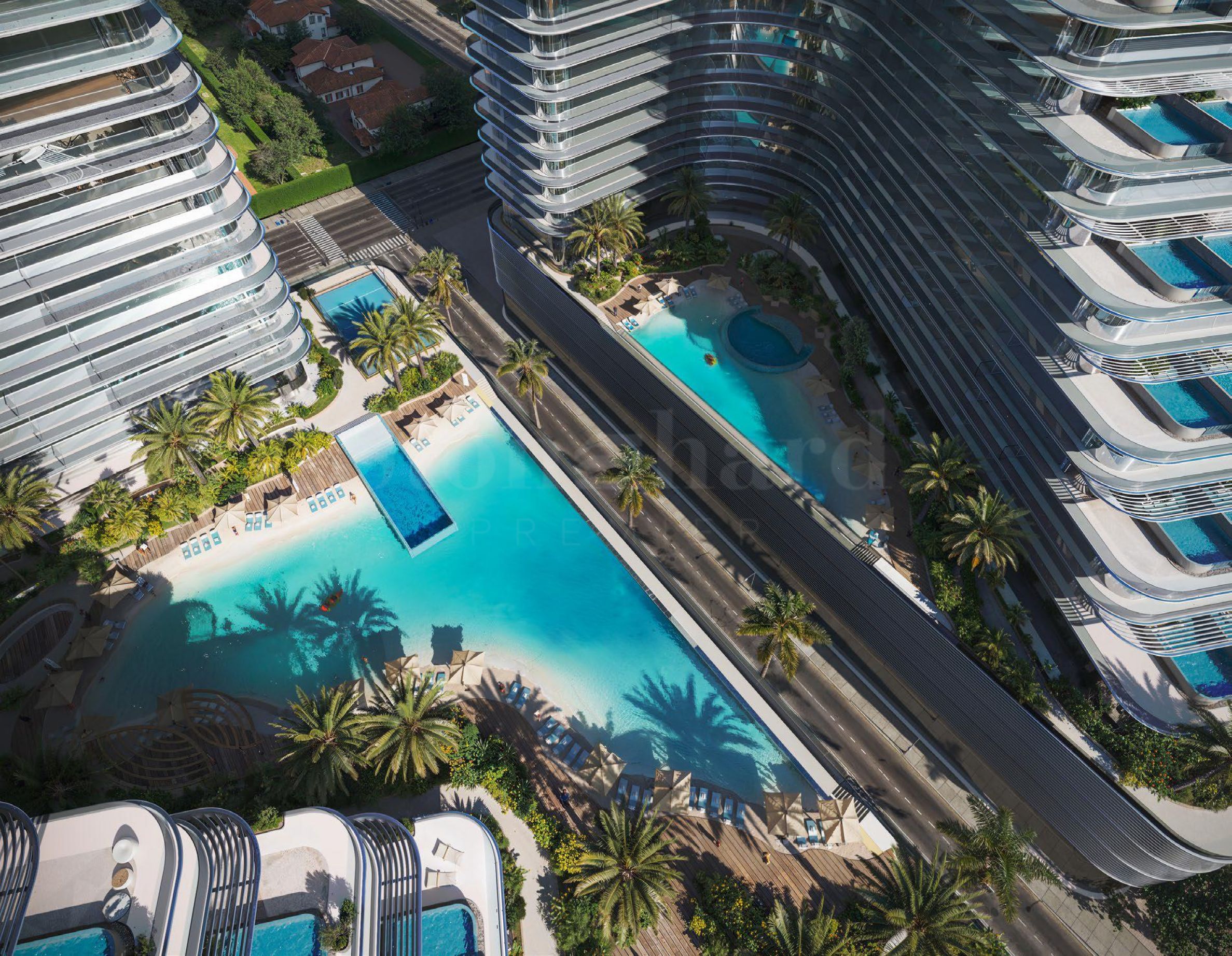 Die exklusive Anlage bietet eine anspruchsvolle Auswahl an Studios sowie 1- und 2-Zimmer-Apartments. Mit markanter symmetrischer Architektur und hochwertiger Ausstattung wurde jede Wohnung des Komplexes sorgfältig mit raumhohen Fenstern gestaltet, die den Innenraum mit natürlichem Licht durchfluten – eine nahtlose Verbindung moderner Eleganz mit intelligenter, funktionaler Raumaufteilung für den Alltag. Ausgewählte 2- und 3-Zimmer-Wohnungen verfügen über einen eigenen Pool.