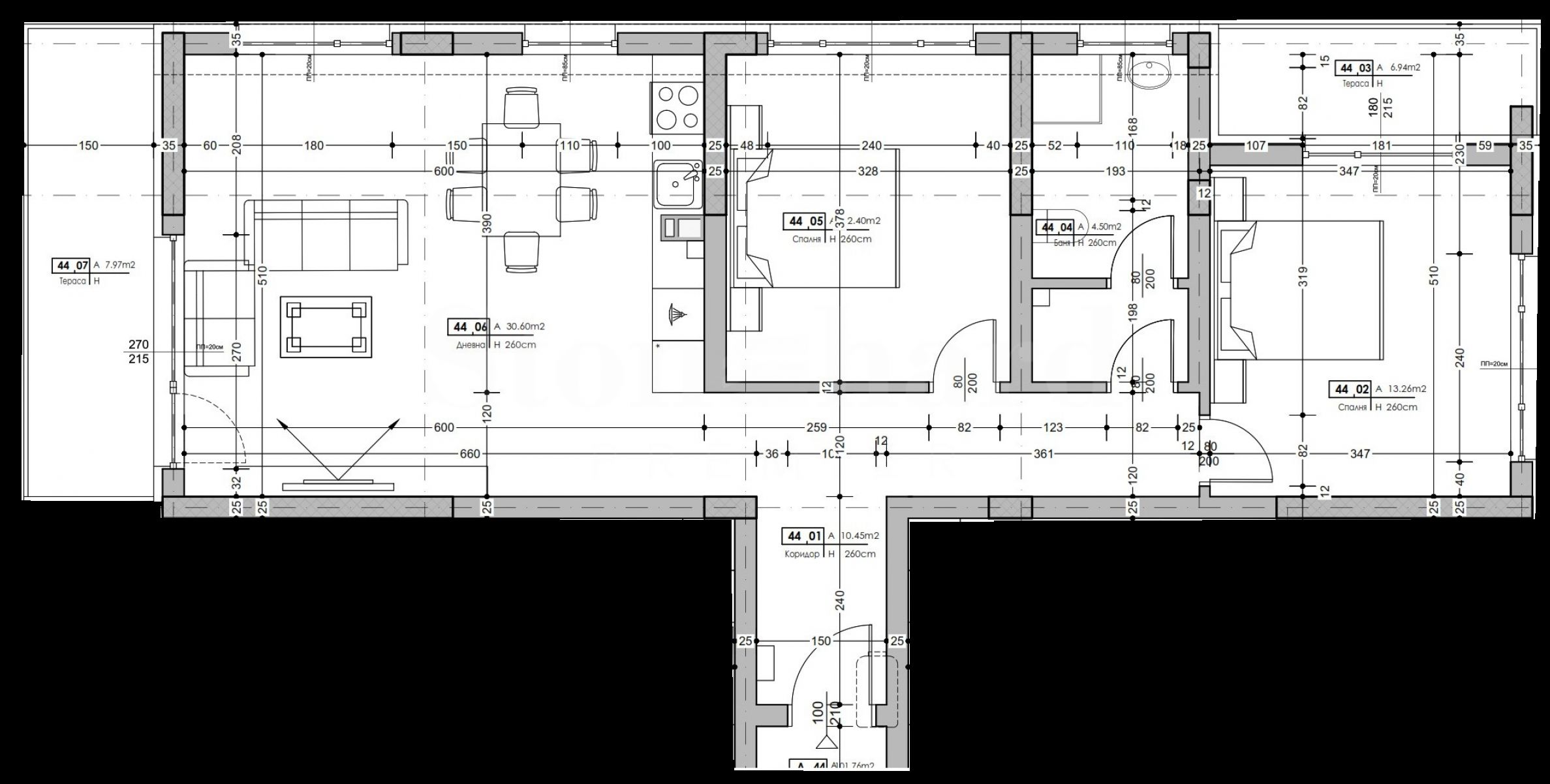 Die Wohnungen werden gemäß dem bulgarischen Zivilgesetzbuch in einem bestimmten Fertigstellungsgrad übergeben: