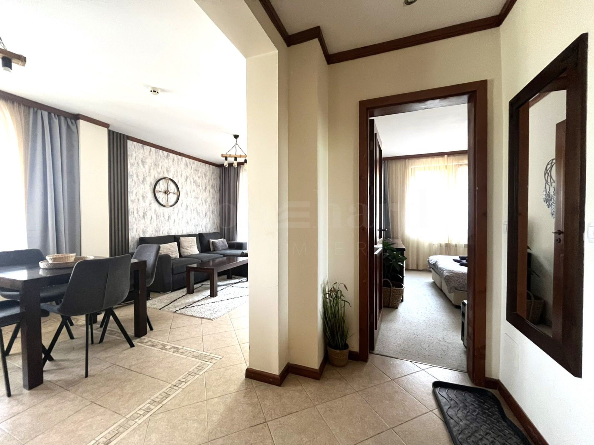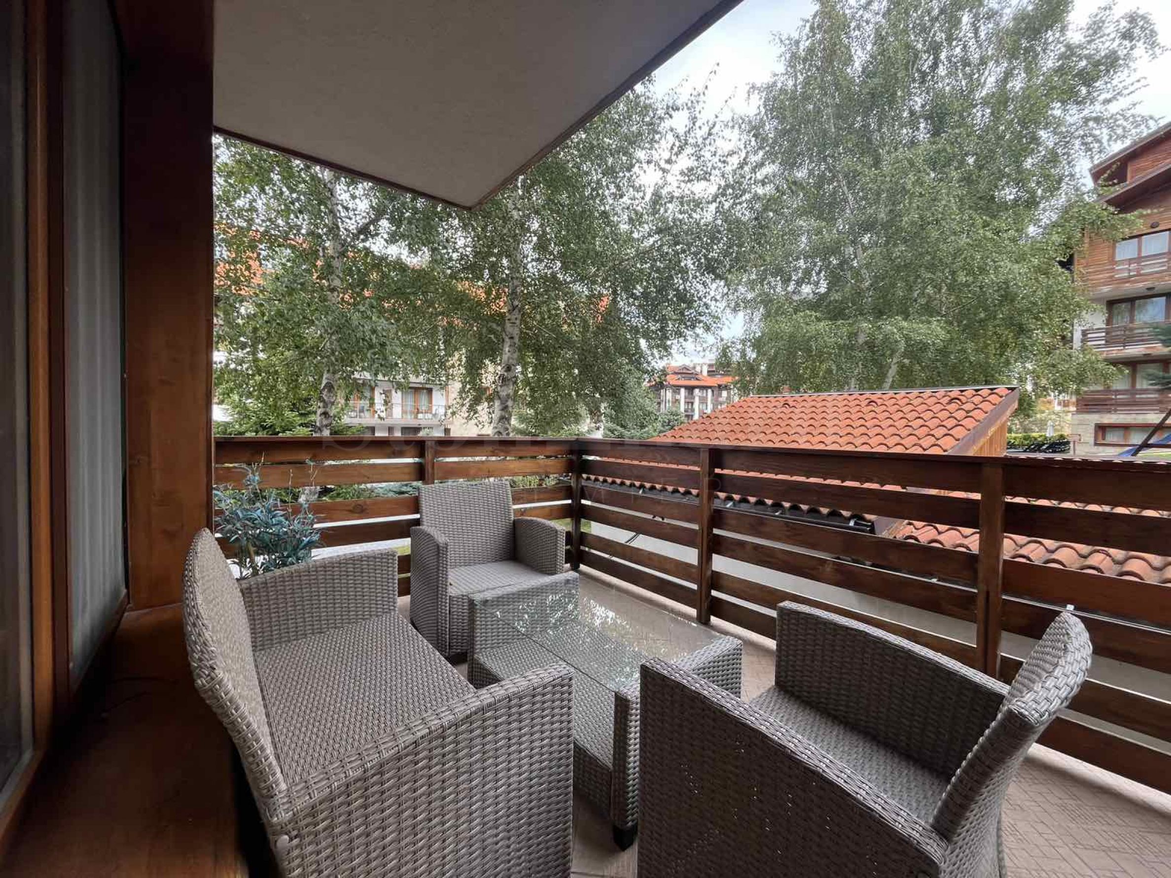 Die Wohnung befindet sich in einem Haus hinter dem Hauptgebäude. Jedes Haus verfügt über einen Massagebereich, eine Sauna, ein Dampfbad, einen Skischrank, einen großen Grill mit Kamin und einen Billardtisch. Alle diese Extras sind ausschließlich für die Eigentümer bestimmt. Die Eigentümer genießen die frische Bergluft und den Blick auf das Pirin-Gebirge. Das charmante Interieur vermittelt ein Gefühl von Wohnkomfort.
