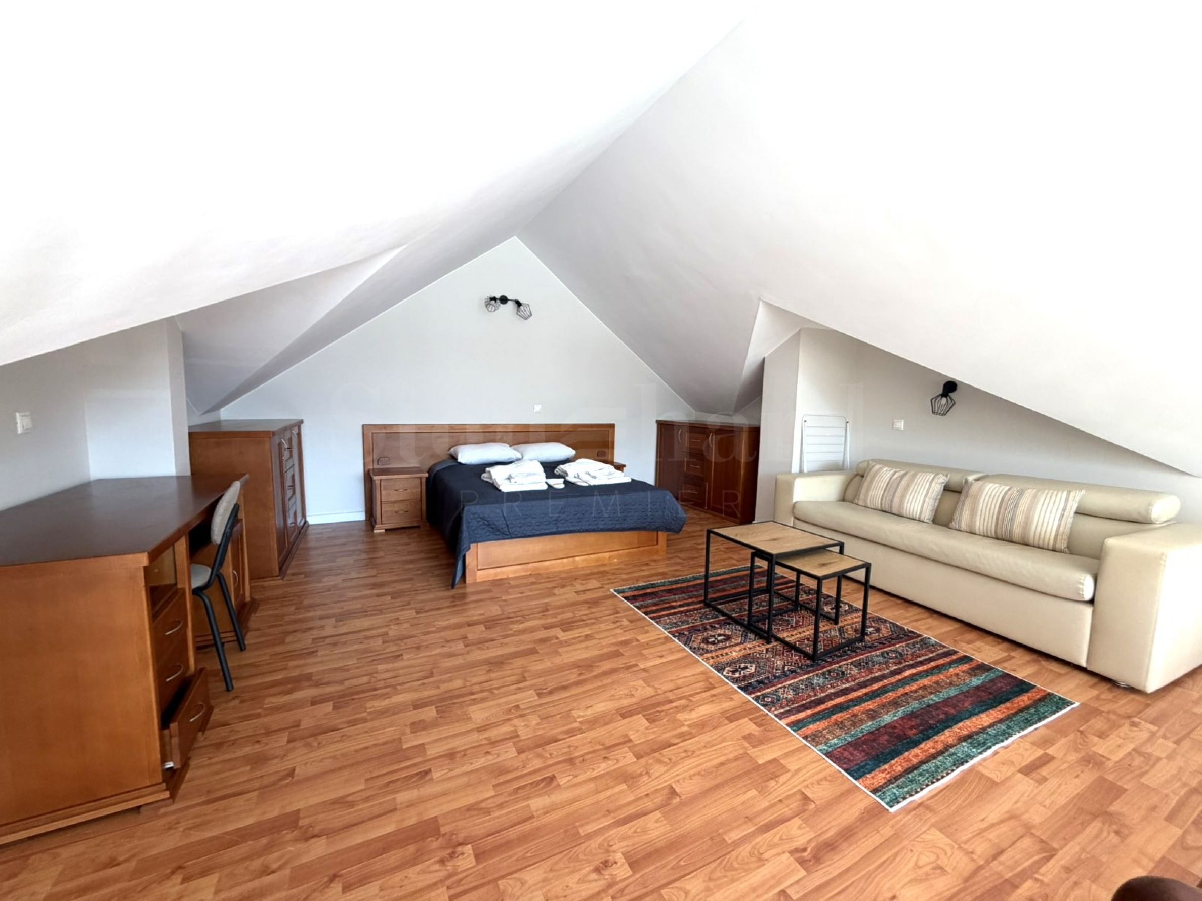 • Schlafzimmer mit Nachttischen, Schminktisch und Sofa.