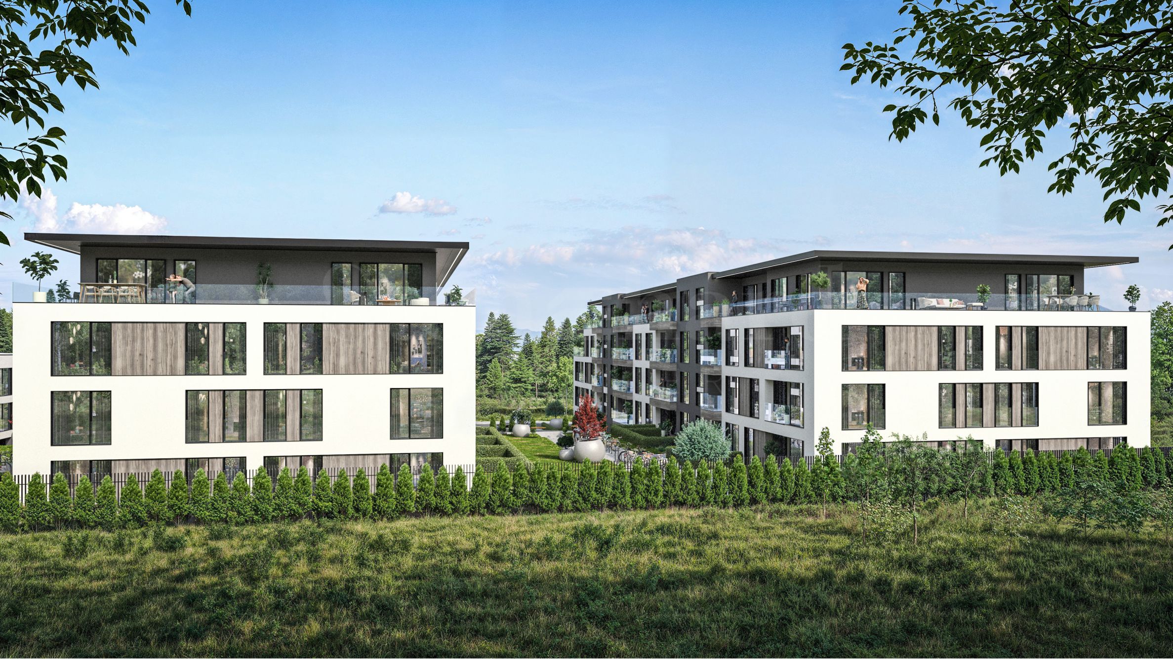 Phase 1 des Komplexes, bestehend aus drei weiteren Gebäuden, hat ebenfalls begonnen. Die beiden Phasen werden ein modernes Wohnensemble im Herzen von „Malinova Dolina“ bilden.