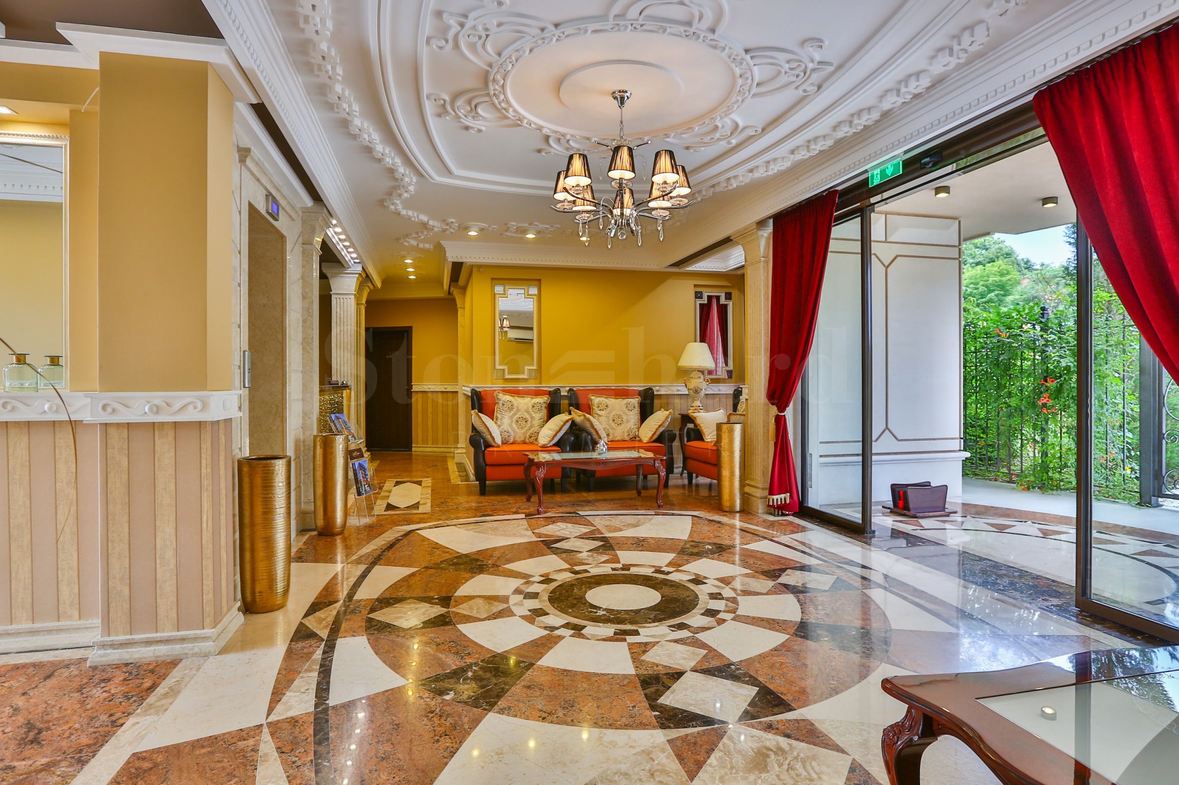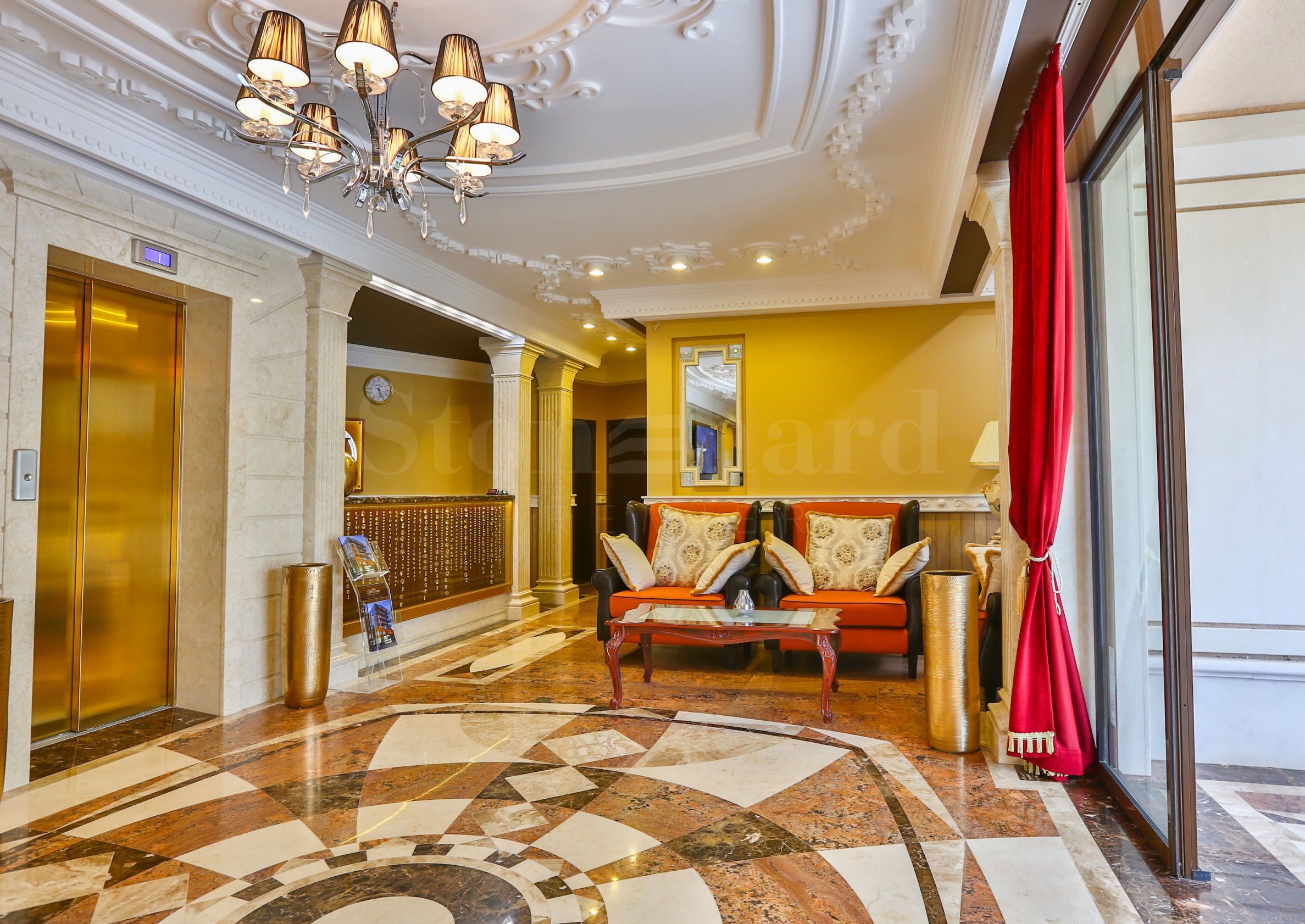 Verwendet wurden erstklassige Materialien – Naturstein an den Fassaden, Marmorböden und Travertin in den Gemeinschaftsbereichen.