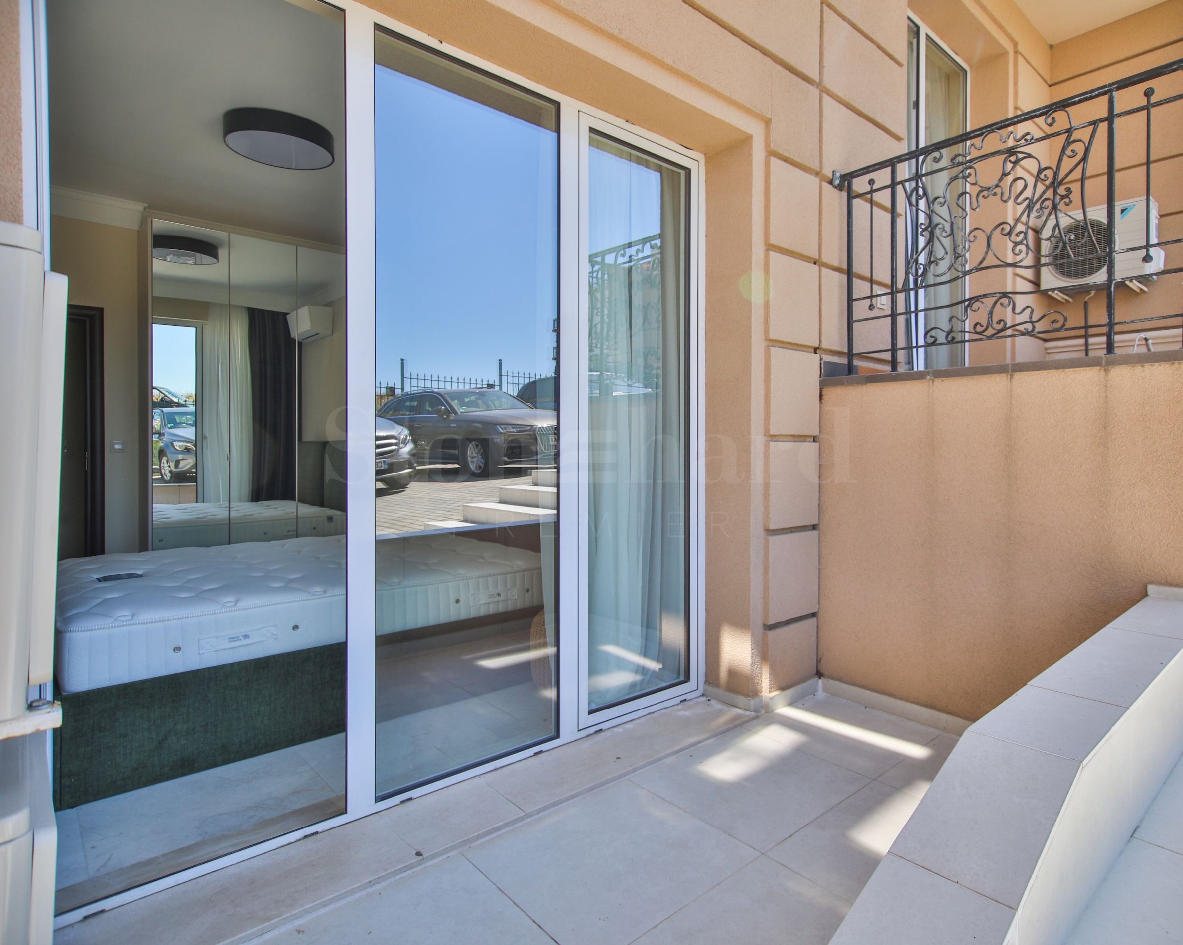 Zwei-Zimmer-Wohnung mit großer Gartenterrasse in der luxuriösen Belle Époque Beach Residence