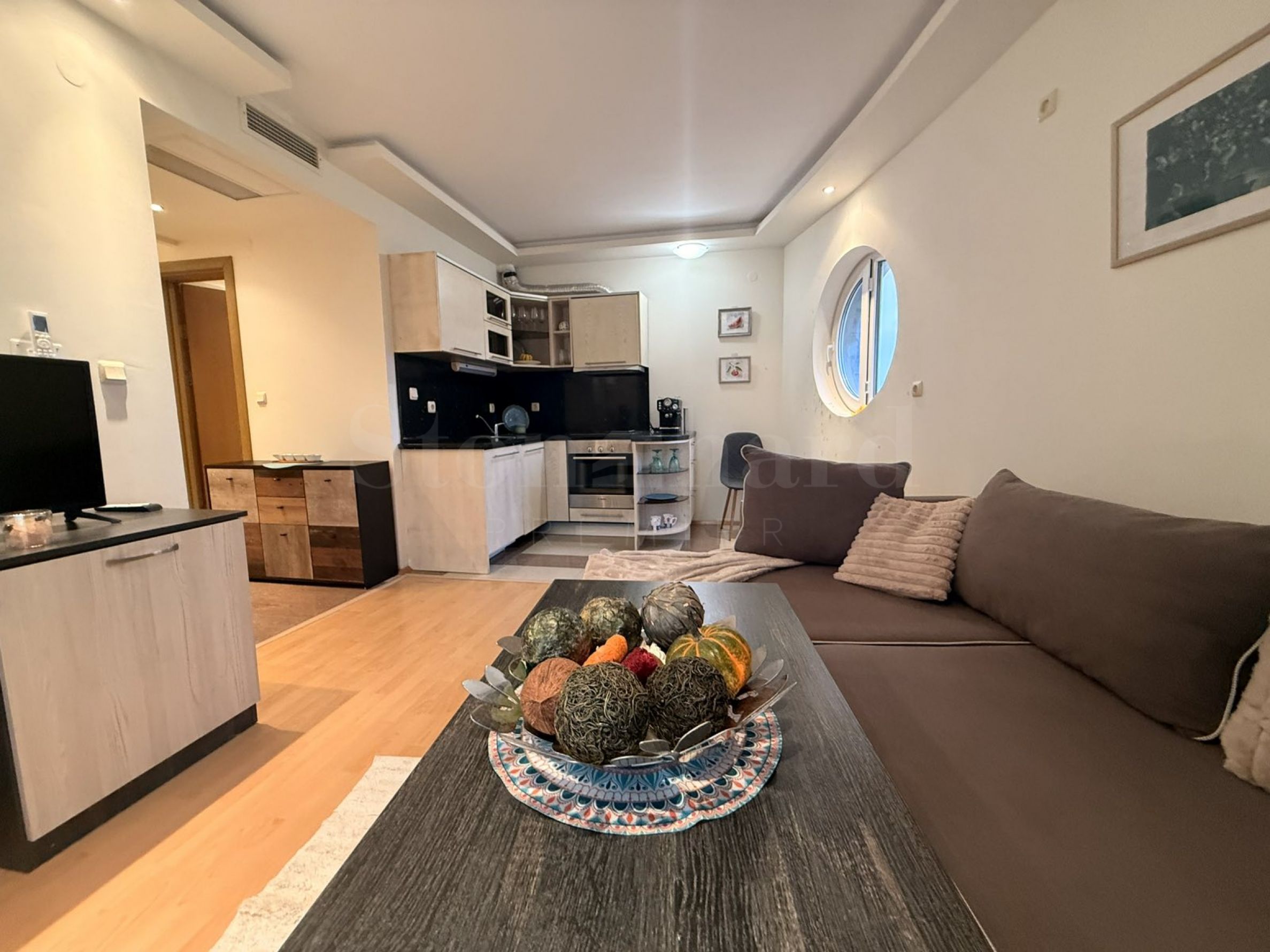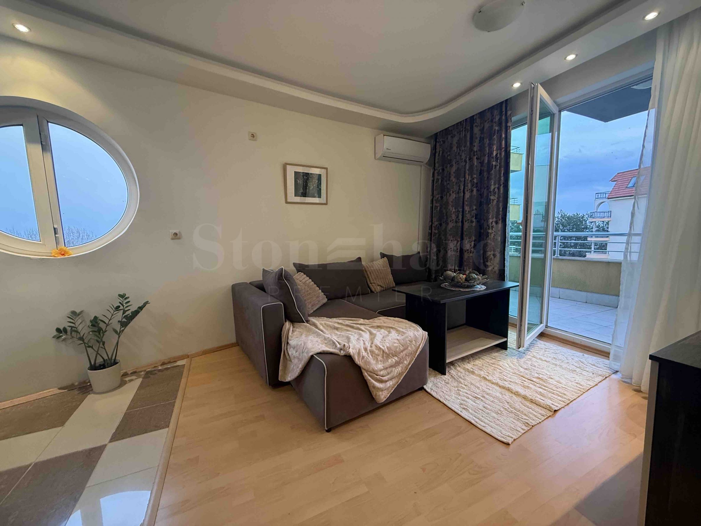 Ein-Zimmer-Apartment in einer Anlage mit Swimmingpool neben dem Strand von Butamyata in Sinemorets